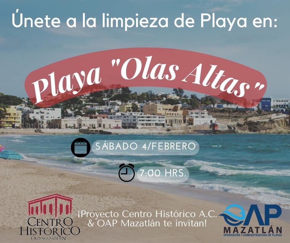 Mazatlán, Sinaloa a 02 de Febrero de 2023.- La Operadora y Administradora de Playas Mazatlán en colaboración con el Proyecto Centro Histórico te invitan a la limpieza de Playa Olas Altas, como parte de la alianza que existe entre ambos organismos.
