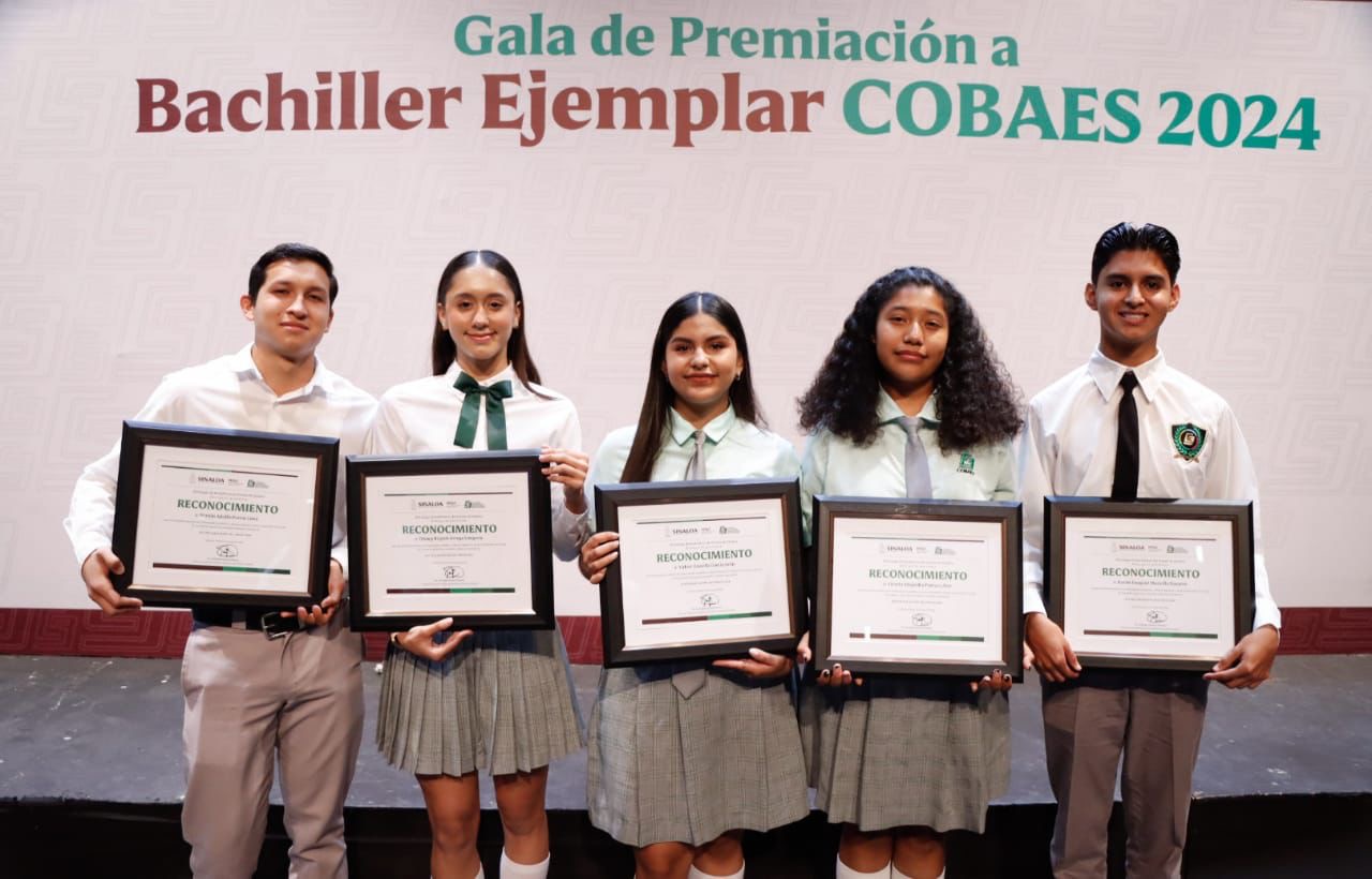 Culiacán, Sinaloa, a 28 de abril de 2024. – Con motivo del Día del Estudiante, que se celebra cada 23 de mayo en nuestro país, autoridades del Colegio de Bachilleres del Estado de Sinaloa (COBAES) entregaron el reconocimiento de Bachiller Ejemplar 2024 a Martín Adolfo Porras Luna, del plantel 06; Dianey Briyith Ortega Longoria, del plantel 15; Yukier Estrella García León, del plantel 21; Valeria Alejandra Patraca Alor del plantel 30; y Karim Ezequiel Mancilla Navarro, del plantel 37.