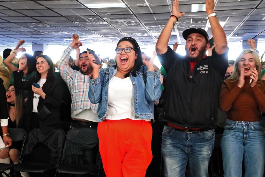 Culiacán, Sinaloa, a 30 de noviembre de 2022.- Con un gran entusiasmo y una férrea esperanza, trabajadores de Palacio de Gobierno presenciaron el tercer juego de la Selección Nacional en la fase de grupos del Mundial de Futbol de Qatar, y por momentos acariciaron la posibilidad de que México pasara a los octavos de final, pues derrotó a su similar de Arabia Saudita, victoria que no le alcanzó debido a la diferencia de goles con el conjunto de Polonia, que pese a su derrota ante Argentina, logró clasificarse junto con la albiceleste a la siguiente ronda, dejando fuera a los mexicanos.