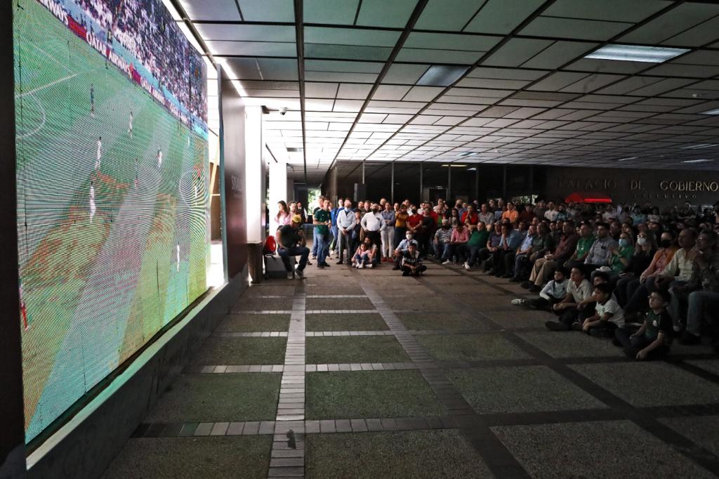 Sin embargo, los cientos de trabajadores que bajaron a la planta baja a presenciar el juego, al igual que varios de los secretarios del gabinete del gobernador Rocha, disfrutaron de un emocionante partido en donde la Selección Nacional estuvo a punto de hacer la heroica y mantener vivo el sueño de Qatar.