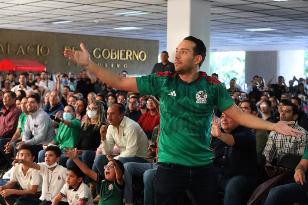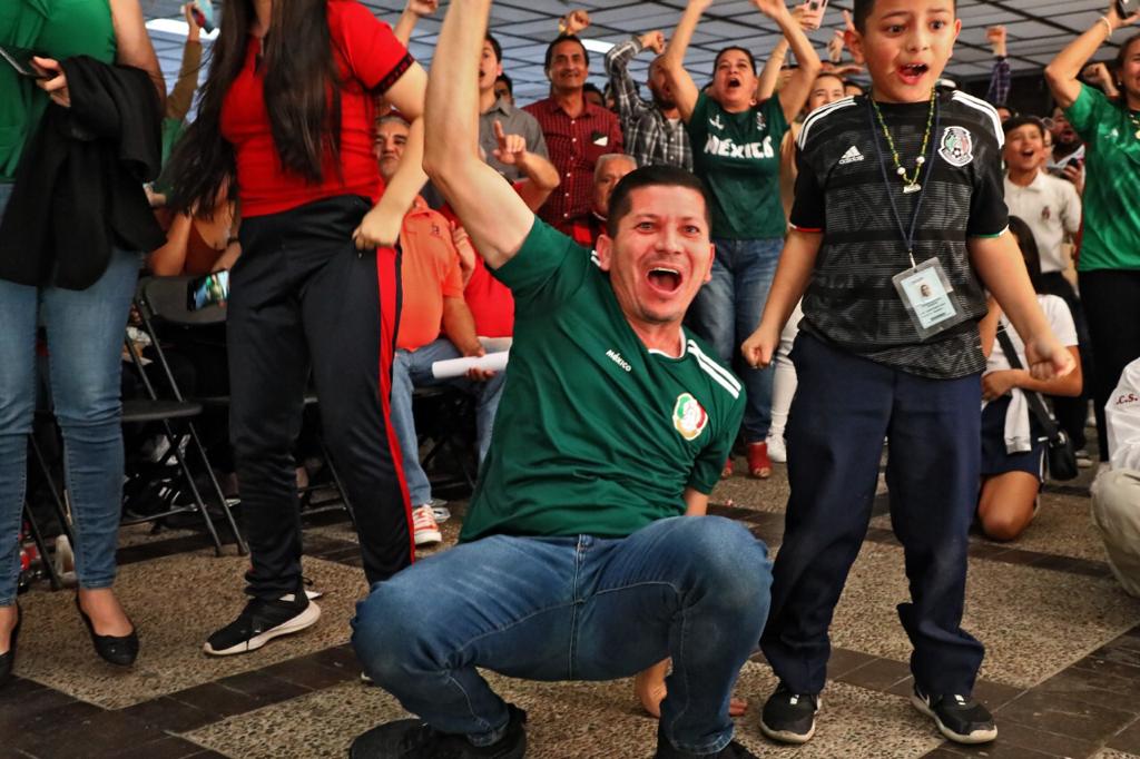 La planta baja de Palacio de Gobierno lució de nueva cuenta llena de unos esperanzados trabajadores quienes frente a una pantalla gigante vitorearon las jugadas de los aztecas y estallaron de júbilo con los goles tempraneros apenas saliendo del vestidor en la segunda mitad, de Henry Martín y Luis Gerardo Chávez, regocijo que llegó al clímax con un tercer gol de Uriel Antuna, que daba el pase directo a México por diferencia de goles, pero que fue anulado por un fuera de lugar.