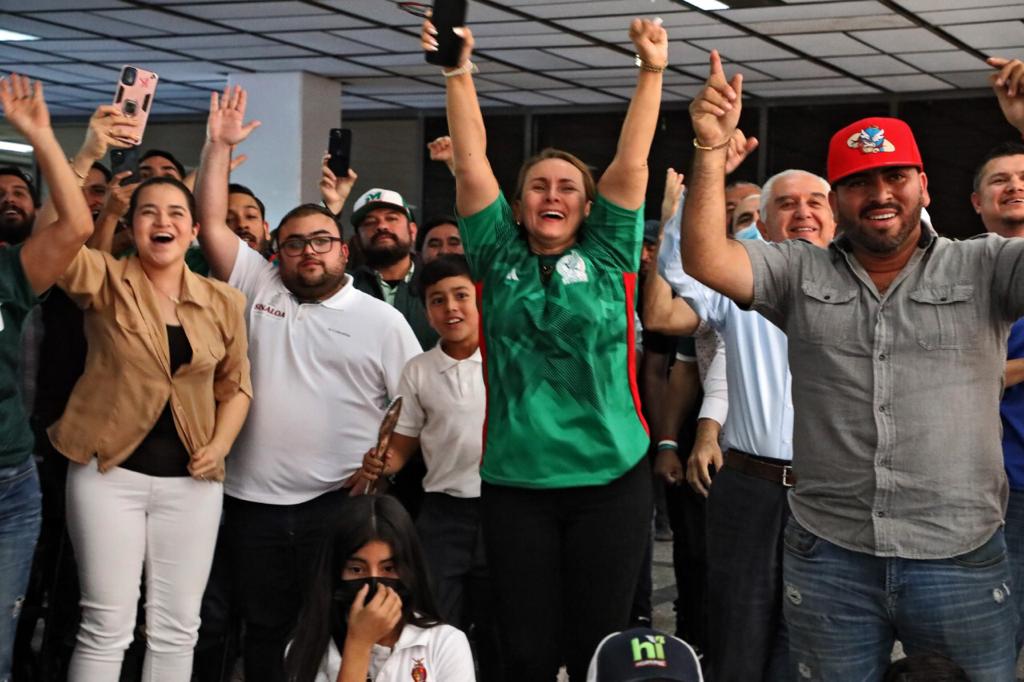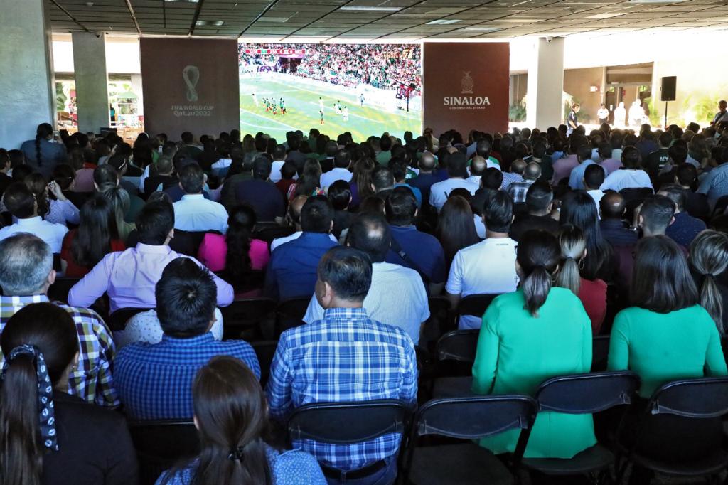 Culiacán, Sinaloa, a 30 de noviembre de 2022.- Con un gran entusiasmo y una férrea esperanza, trabajadores de Palacio de Gobierno presenciaron el tercer juego de la Selección Nacional en la fase de grupos del Mundial de Futbol de Qatar, y por momentos acariciaron la posibilidad de que México pasara a los octavos de final, pues derrotó a su similar de Arabia Saudita, victoria que no le alcanzó debido a la diferencia de goles con el conjunto de Polonia, que pese a su derrota ante Argentina, logró clasificarse junto con la albiceleste a la siguiente ronda, dejando fuera a los mexicanos.
