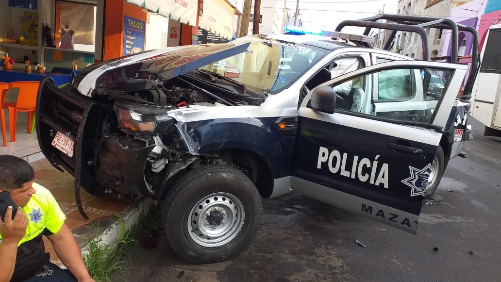 Mazatlán, Sinaloa.- Un elemento del grupo Capta lesionado y cuantiosos daños materiales, es el resultado de un aparente cruce imprudencial de una patrulla.