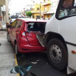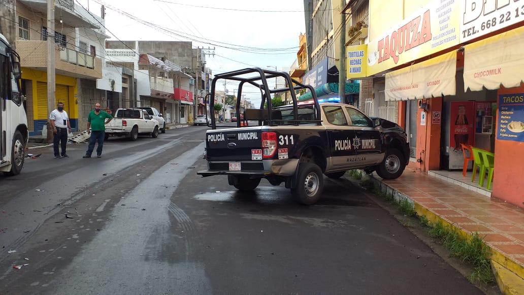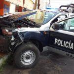 Datos en el lugar indican que la patrulla no respetó el alto, causando esto la invasión de carril a un camión urbano, el cual salió proyectado contra tres vehículos que se encontraban estacionados.