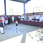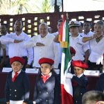En la ceremonia cívica participaron también las pequeñas Jatziry Guadalupe González Partida, con el Juramento a la Bandera, y María José Guerrero Saldívar, con la bienvenida a las autoridades.