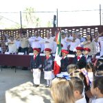 La mañana de hoy se llevó a cabo la ceremonia del Lunes Cívico en este kínder, y estuvo engalanado con la presencia de la Banda de Música de la Tercera Región Militar, que hizo sonar fuertes las notas del Himno Nacional y del «Corrido de Mazatlán».