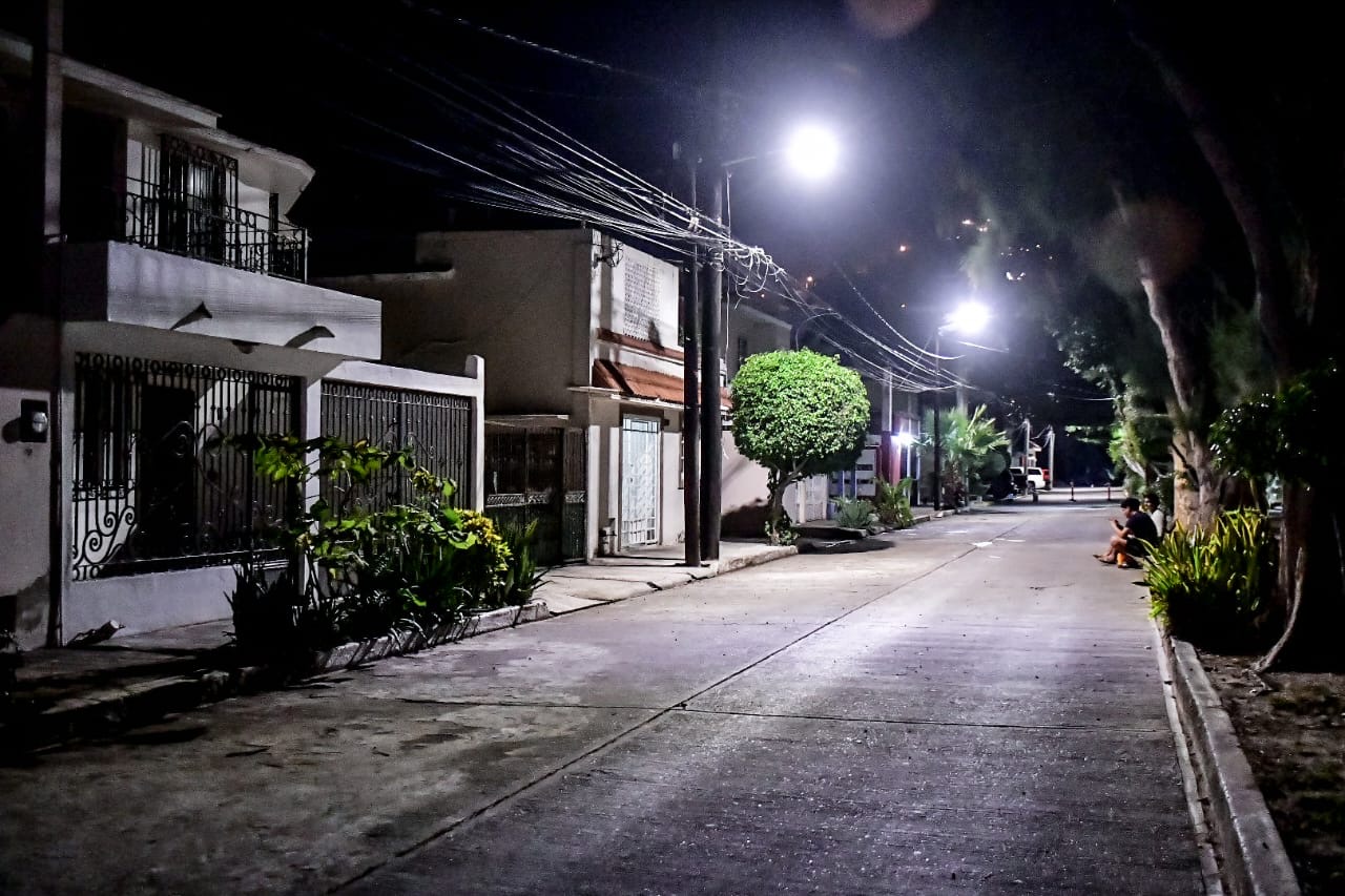 La Directora de Servicios Públicos, Karla Camacho añadió que el asentamiento recibió 146 luminarias LED de 80 watts de alta tecnología y la poda de árboles para mejorar