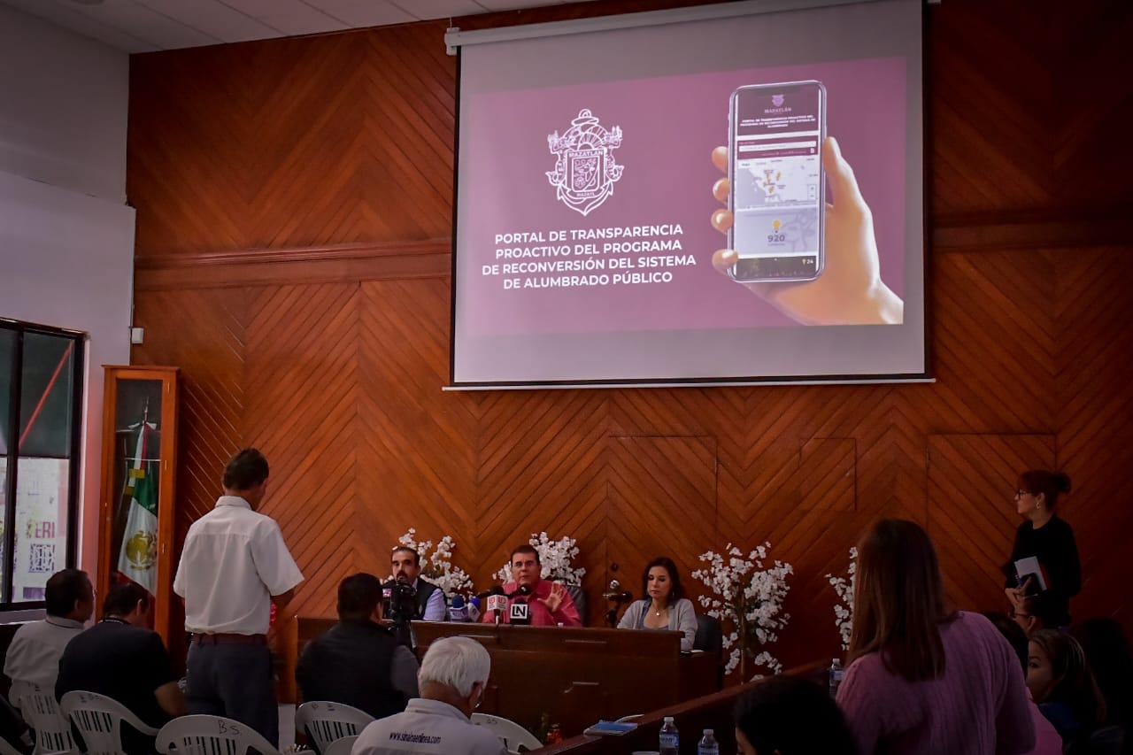Mazatlán Sinaloa 16 diciembre 2022.- Siguiendo con el ejercicio de transparencia, el Gobierno de Mazatlán puso en marcha este viernes un micrositio donde se muestra toda la información del programa de reconversión de alumbrado público, así lo anunció en conferencia de prensa el Presidente Municipal Edgar González Zatarain.