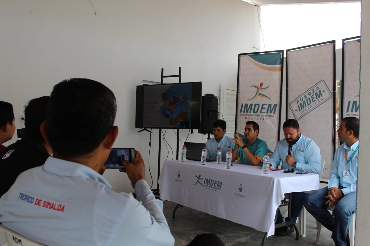 Este viernes, el director del Instituto Municipal del Deporte de Mazatlán, Humberto Álvarez Osuna, y el coordinador de Deporte Federado del Imdem, David López Beltrán, presentaron las 23 academias que abarcan 14 disciplinas en deporte convencional y cinco en deporte adaptado.
