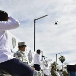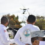 Durante su mensaje se ofreció una demostración de dos de los 12 drones que se sumarán a las actividades del operativo con vigilancia y seguridad, además de la difusión de mensajes importantes para los bañistas, como la sana distancia y el uso correcto del cubrebocas.