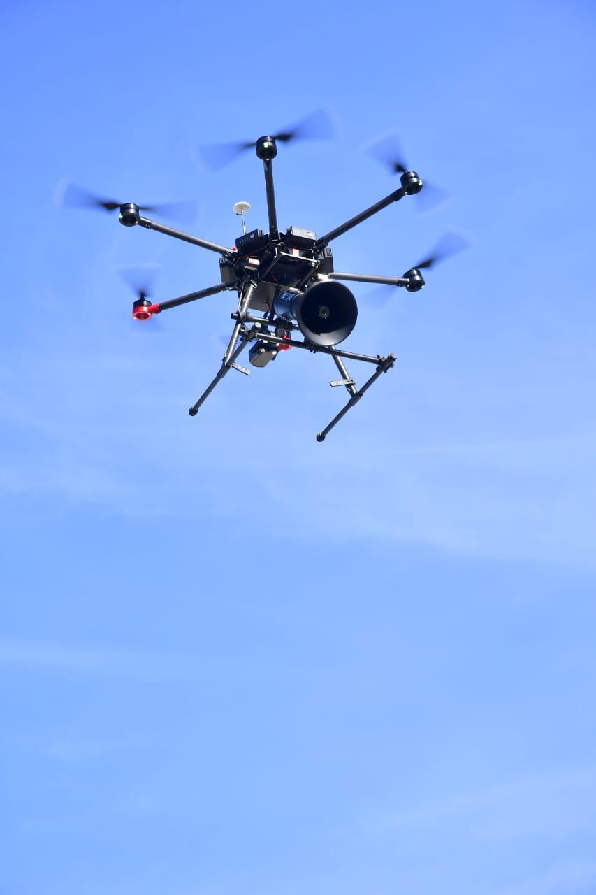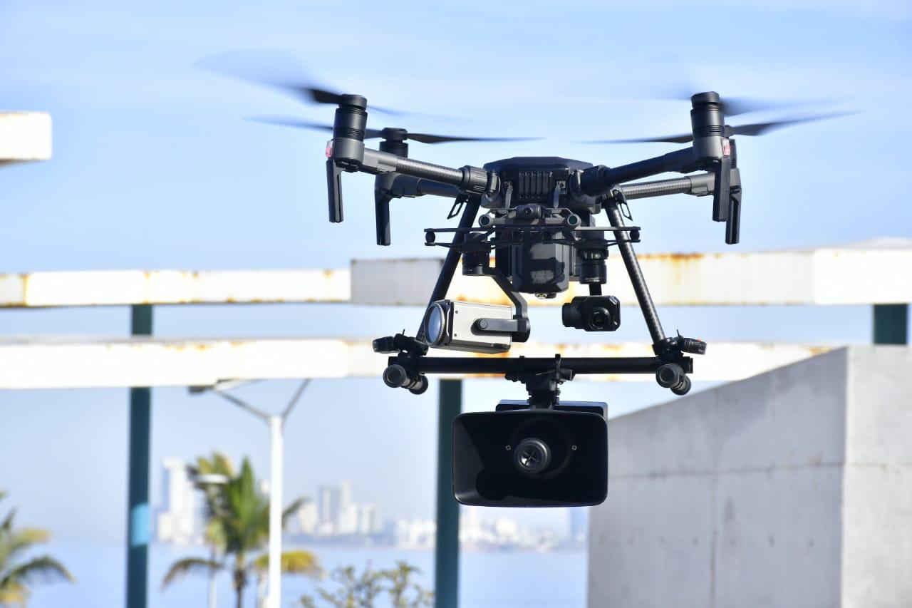 Durante su mensaje se ofreció una demostración de dos de los 12 drones que se sumarán a las actividades del operativo con vigilancia y seguridad, además de la difusión de mensajes importantes para los bañistas, como la sana distancia y el uso correcto del cubrebocas.