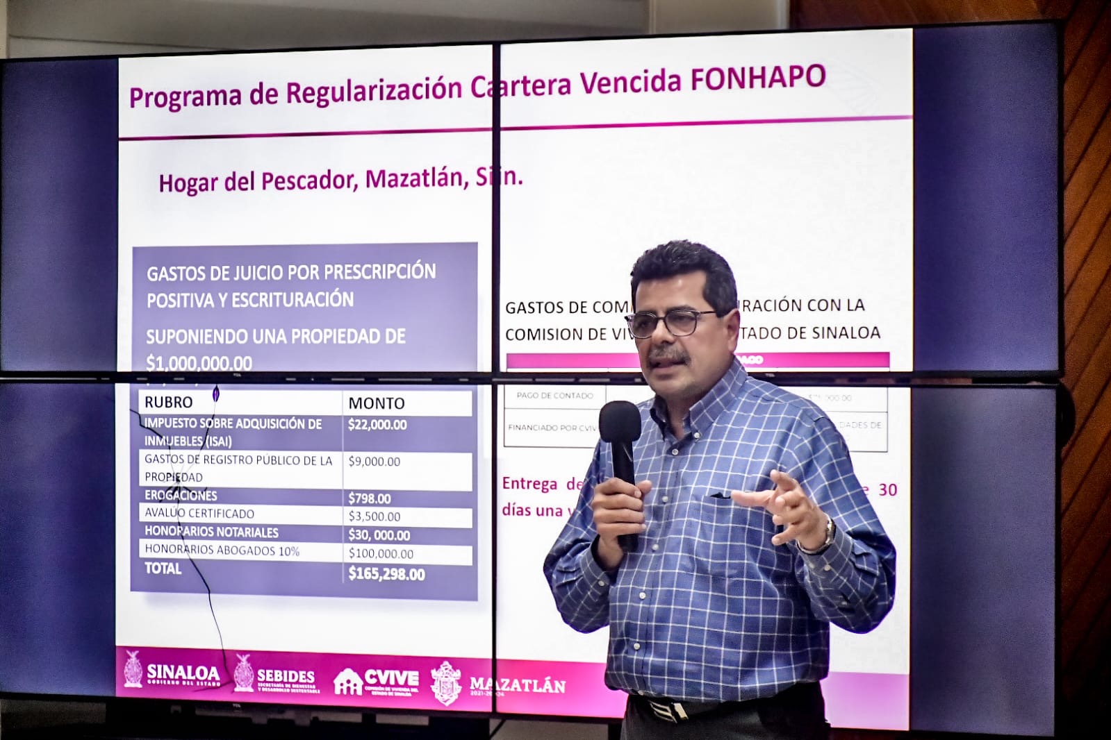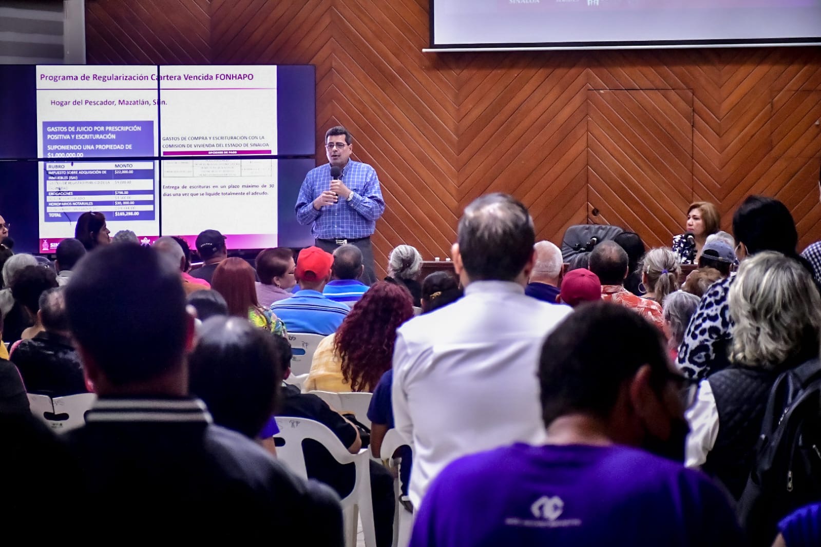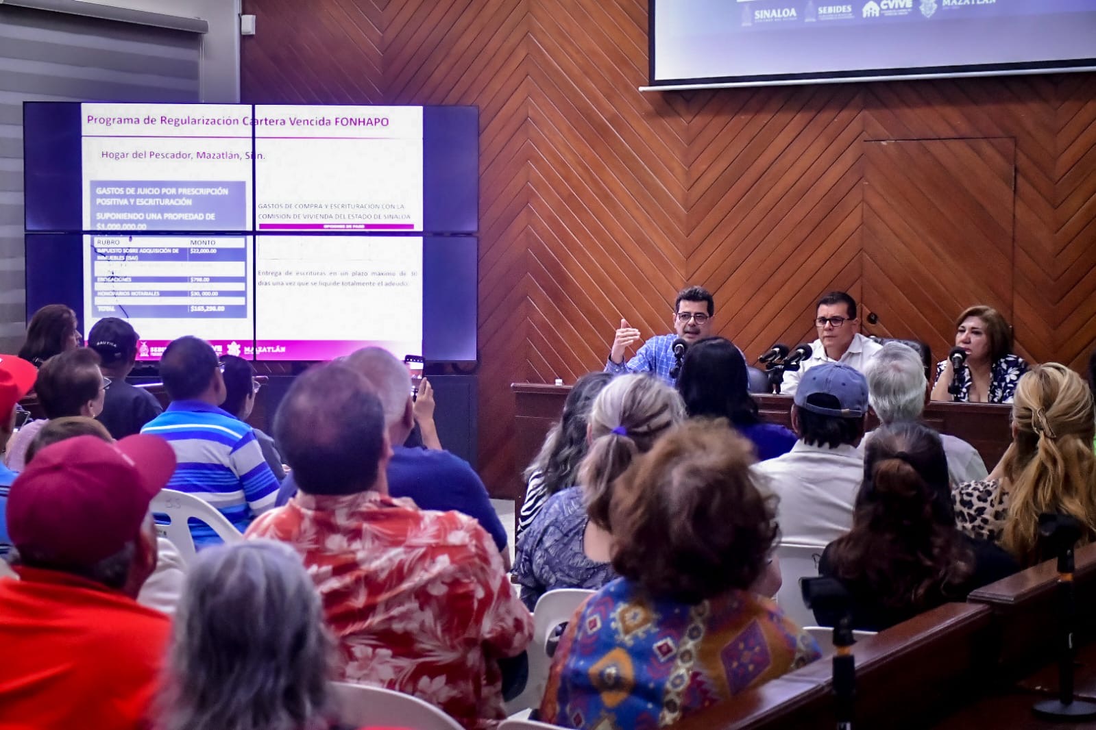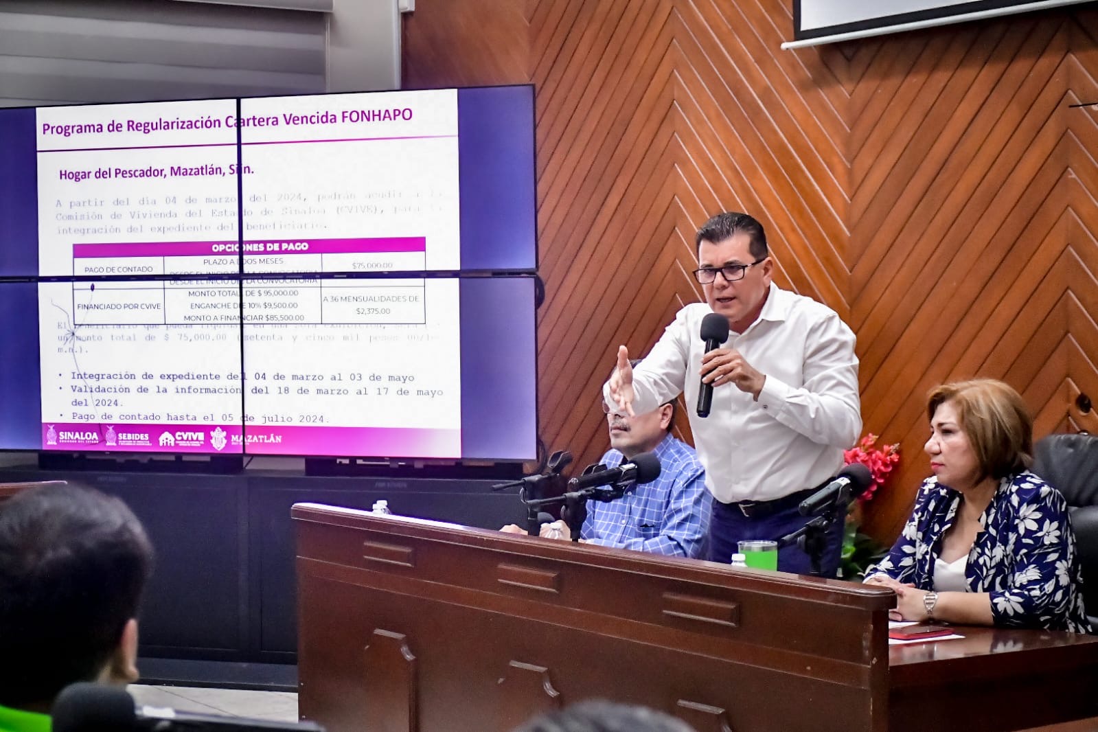 Durante el encuentro, presidido por el Alcalde y la Secretaria de Bienestar y Desarrollo Sustentable, María Inés Pérez Corral, junto al titular de la Comisión de Vivienda del Estado, Antonio Castañeda, se informó a los habitantes que el Gobierno del Estado adquirió la cartera vencida al Fideicomiso Fondo Nacional de Habitaciones Populares (FONHAPO) para apoyar a 656 familias sinaloenses. Tras más de 30 años de lucha por obtener certeza jurídica, ambos gobiernos ofrecerán opciones para asegurar el patrimonio de las familias de la colonia Hogar del Pescador.
