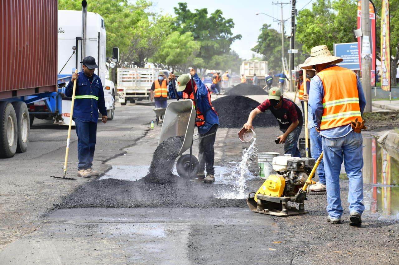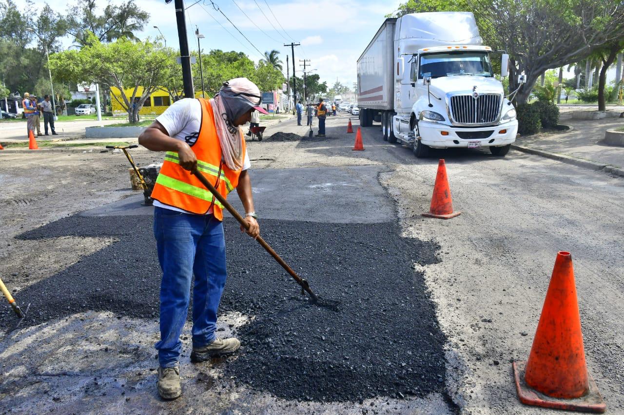 Comentó que el Ayuntamiento tiene un programa permanente de bacheo y a diario colocan hasta 10 metros cúbicos de concreto asfáltico en diferentes partes de la ciudad, y este día se encuentra trabajando en la Avenida Gabriel Leyva, una de las principales vialidades del puerto.