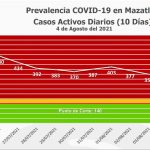 El funcionario comentó que con esta cifra Mazatlán continúa en color rojo del Semáforo Epidemiológico Estatal y en tercer lugar en casos activos, superado por los municipios de Culiacán y Ahome, que el día de hoy presentan mil 159 y 529 respectivamente.