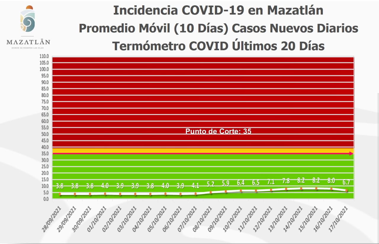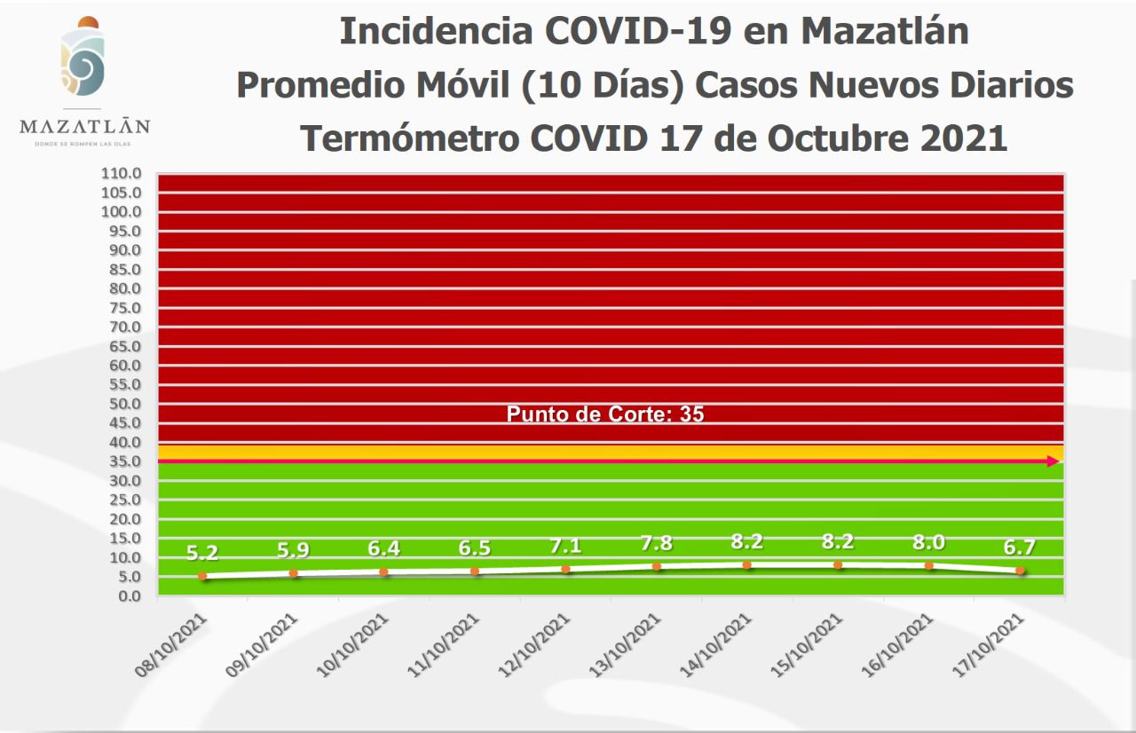 También destacó que la ciudad se mantiene en color verde del Semáforo Estatal y del Termómetro Covid, que se ubicó en 6.7 grados.