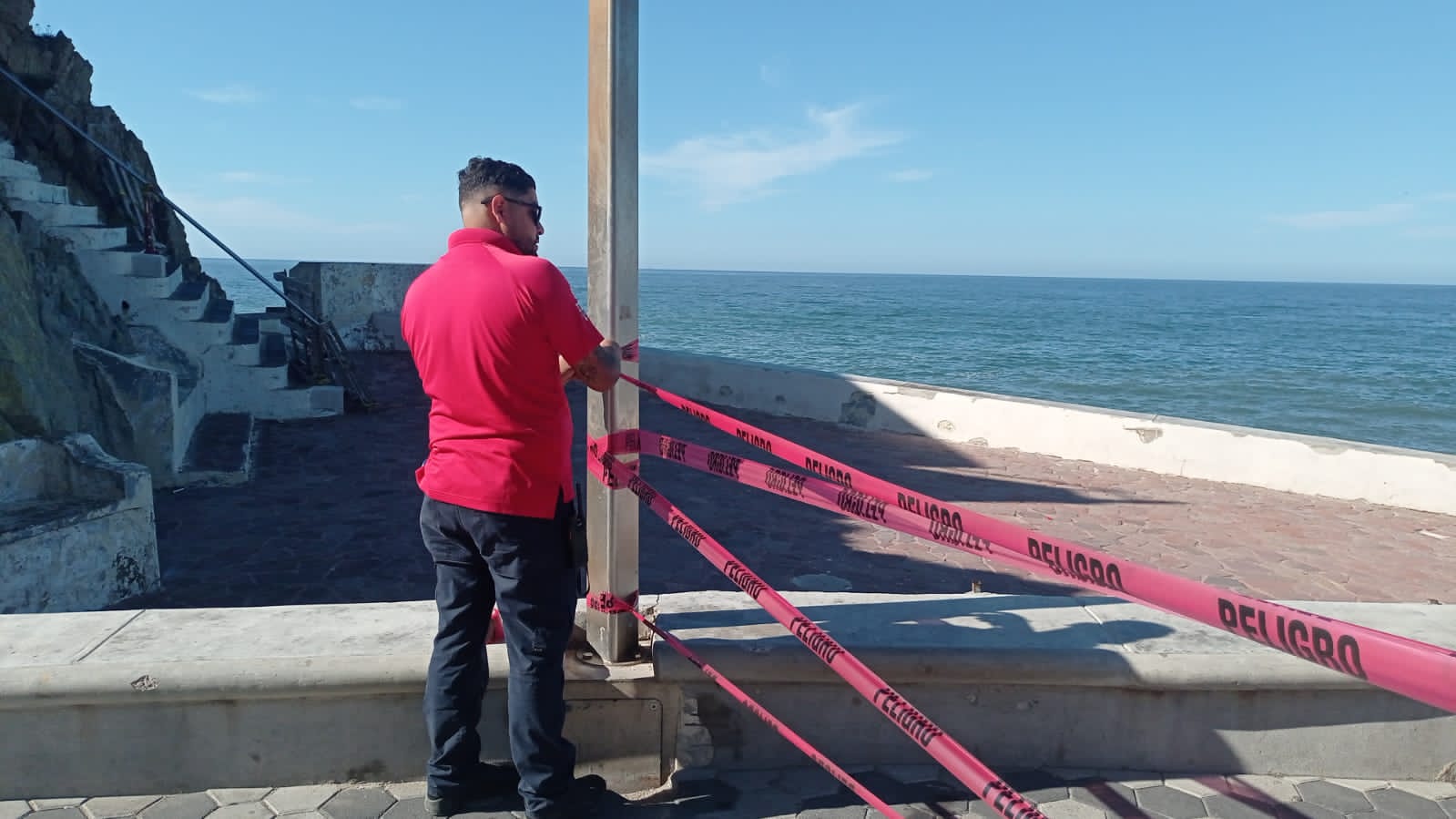 Mazatlán, Sinaloa 22 de Noviembre de 2022. – La Coordinación de Protección Civil Municipal hace el llamado a la sociedad que se desplaza por el Paseo del Centenario frente al Clavadista, a extremar precaución derivado de un socavón que se abrió en la banqueta durante la mañana del martes.