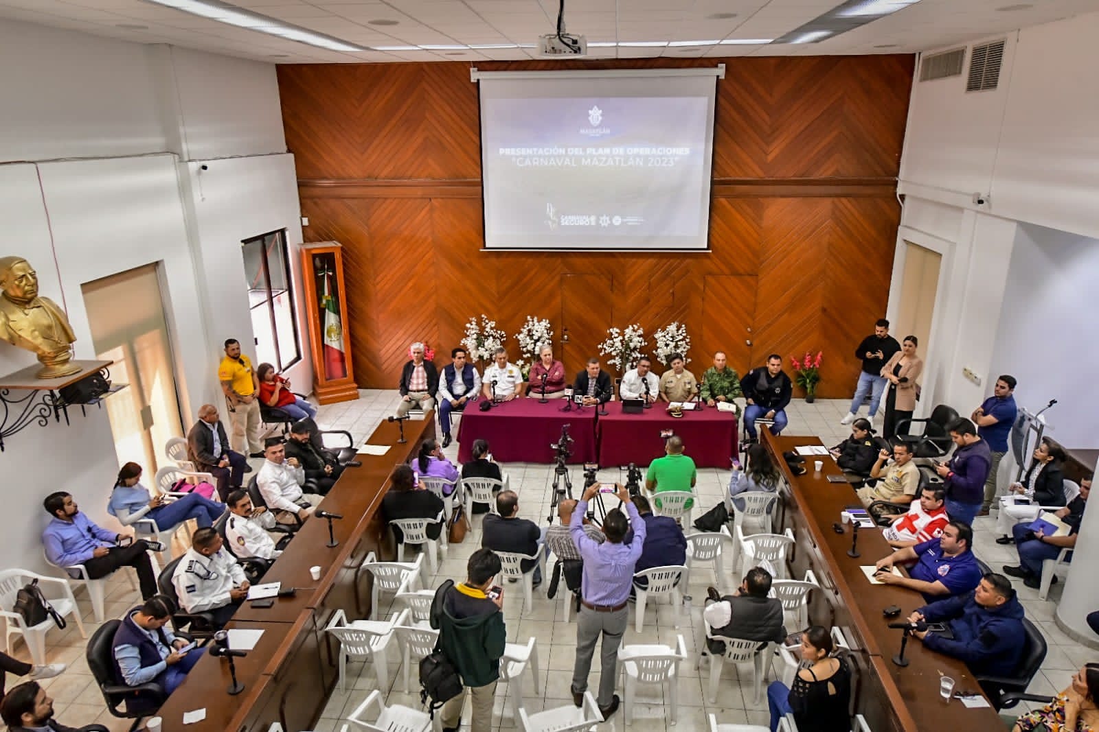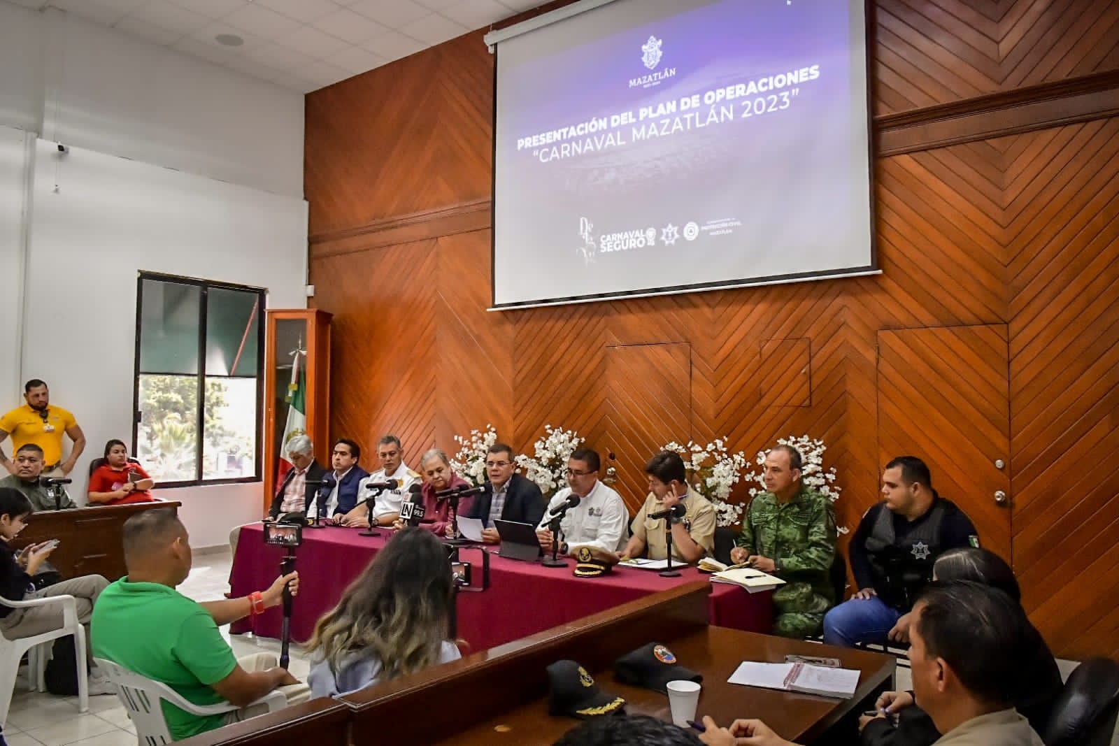 Mazatlán, Sinaloa 9 de Febrero de 2023.- Autoridades municipales y de seguridad de los tres niveles de gobierno, ademas de los cuerpos de emergencia presentaron el Plan Operativo Carnaval Mazatlán 2023 “Deja -Vu”, que tiene como finalidad obtener resultados positivos en materia de prevención y a seguridad en la zona de fiesta, así como en la ciudad y la zona rural.