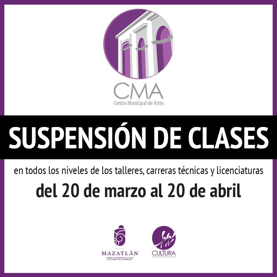 Con respecto a la comunidad estudiantil del Centro Municipal de las Artes el funcionario aseveró que se rigen a las indicaciones de la Secretaría de Educación Pública y Cultura del Estado de Sinaloa, por lo que los alumnos y alumnas acudirán a clases hasta este viernes 20 de marzo, reanudando las actividades el lunes 20 de abril.
