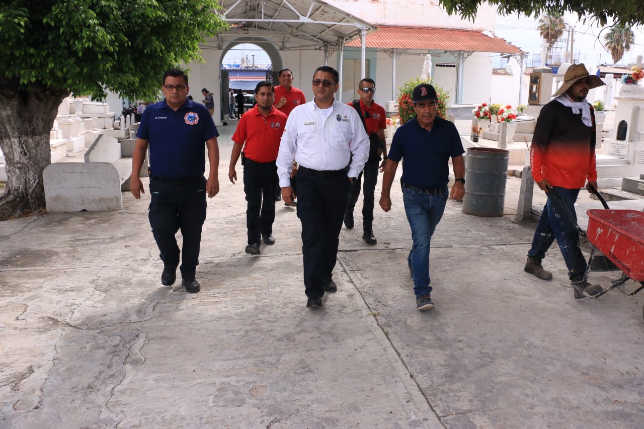 Personal de Servicios Públicos, Oficialía Mayor, Protección Civil, Seguridad Pública y Tránsito Municipal recorrieron los cementerios para establecer las estrategias a implementar el primero y dos de noviembre.