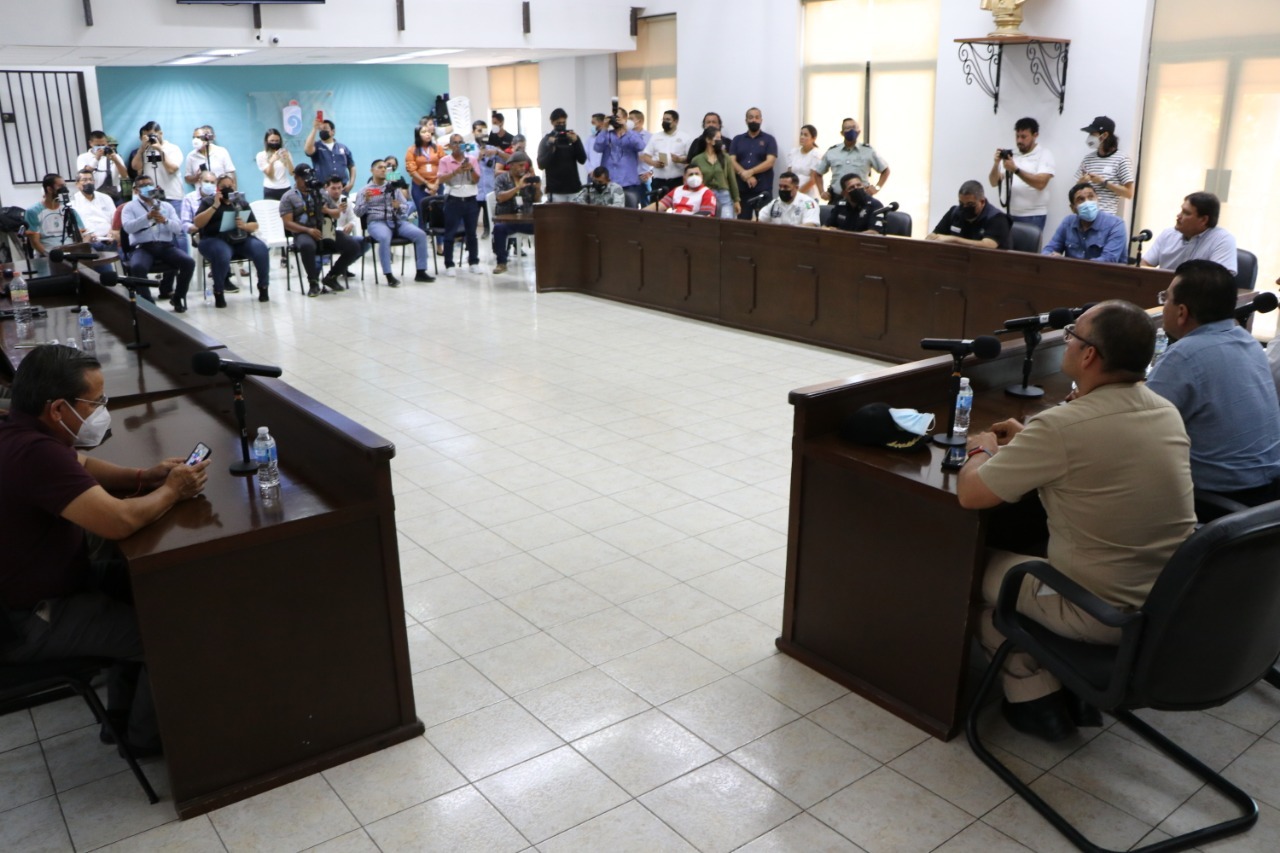 A nombre del Presidente Municipal, Luis Guillermo Benitez Torres, el Secretario del Ayuntamiento, Edgar González Estrada, hizo un llamado a la ciudadanía a informarse por los canales oficiales de comunicación, y prepararse en lo inmediato desde casa para lo que pueda suceder en los próximos días.
