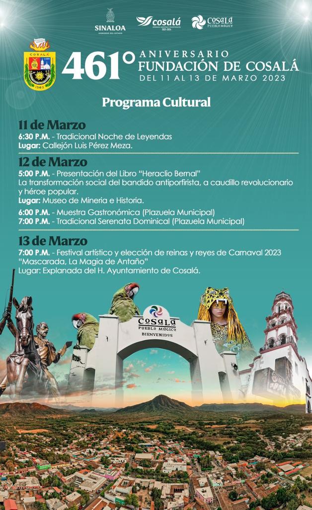 Mazatlán, Sin., marzo 03 de 2023.- En Cosalá Pueblo Mágico, los habitantes se preparan para celebrar a lo grande el 461 aniversario de su fundación, así como la Semana Santa Fest y su Carnaval 2023.