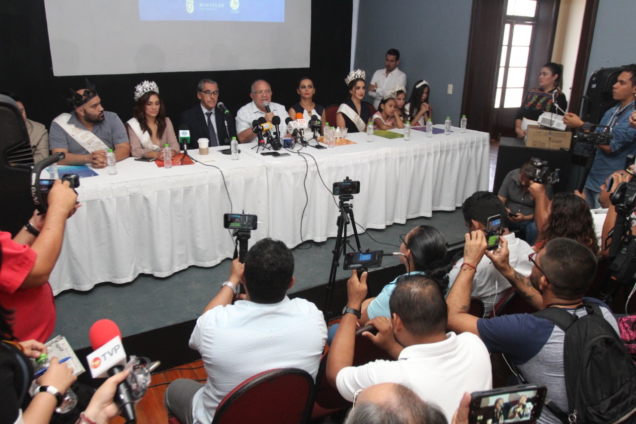 El llamado se hizo este miércoles en la Casa Haas, donde estuvieron presentes el alcalde Luis Guillermo Benítez Torres, el titular del Cultura municipal, Óscar Blancarte Pimentel; la corte real del Carnaval 2018, integrada por Alexa Méndez, Sofía Briseño, Tulio Martínez, Radamés Pérez, Grettel Ochoa, Camila y Zuleyka, y Celia Gloria Chávez Carrasco, reina del Carnaval de Mazatlán de 1994.