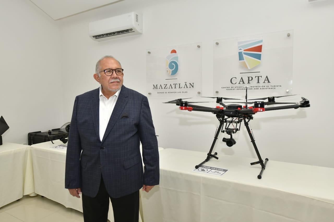 Durante el evento, se hizo una demostración de los drones que se sumarán a las acciones de vigilancia sanitaria en Semana Santa, los cuales cuentan con tecnología para contabilizar el número de personas en la playa, la temperatura corporal y para auxiliar en situaciones de inseguridad en el puerto.