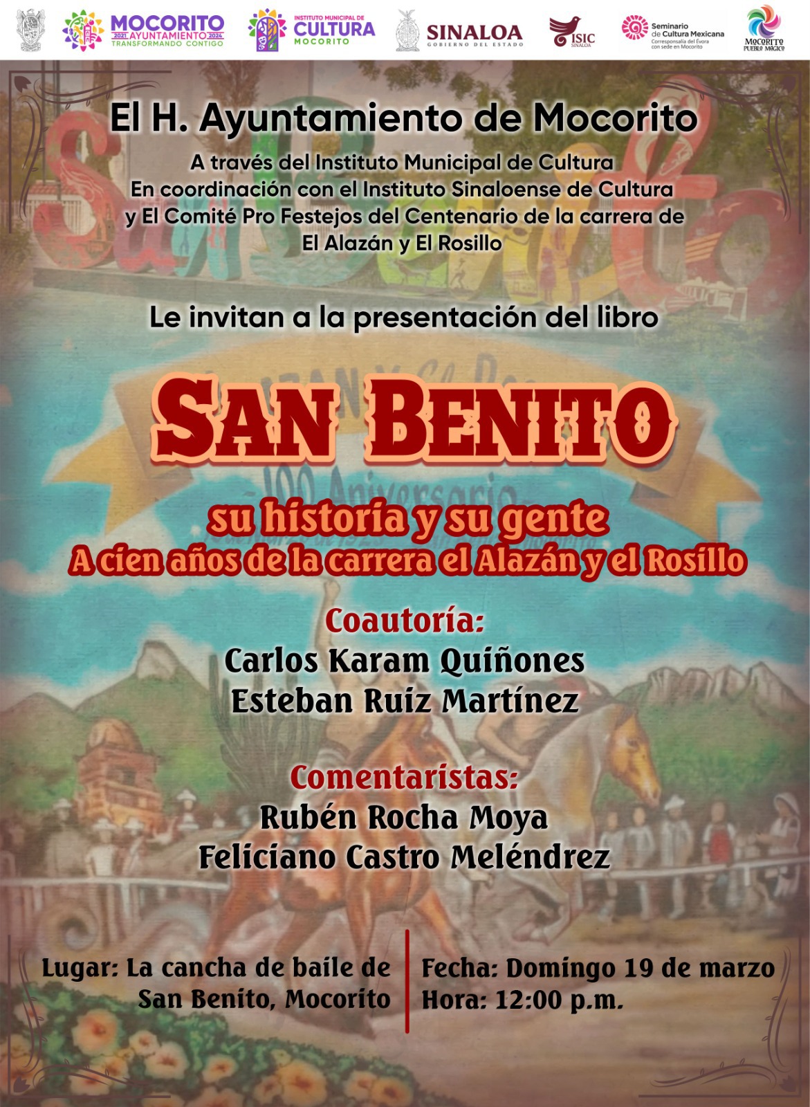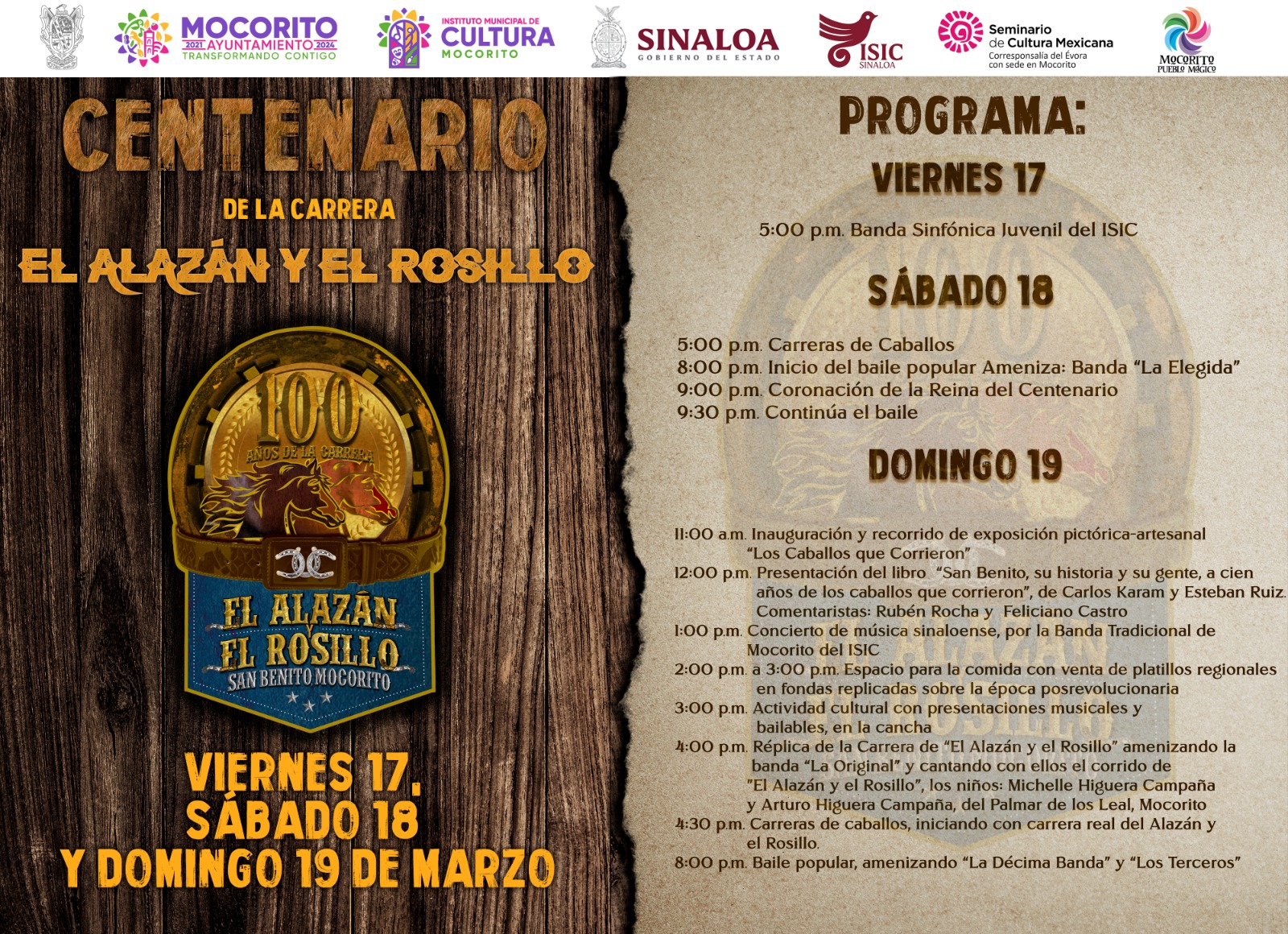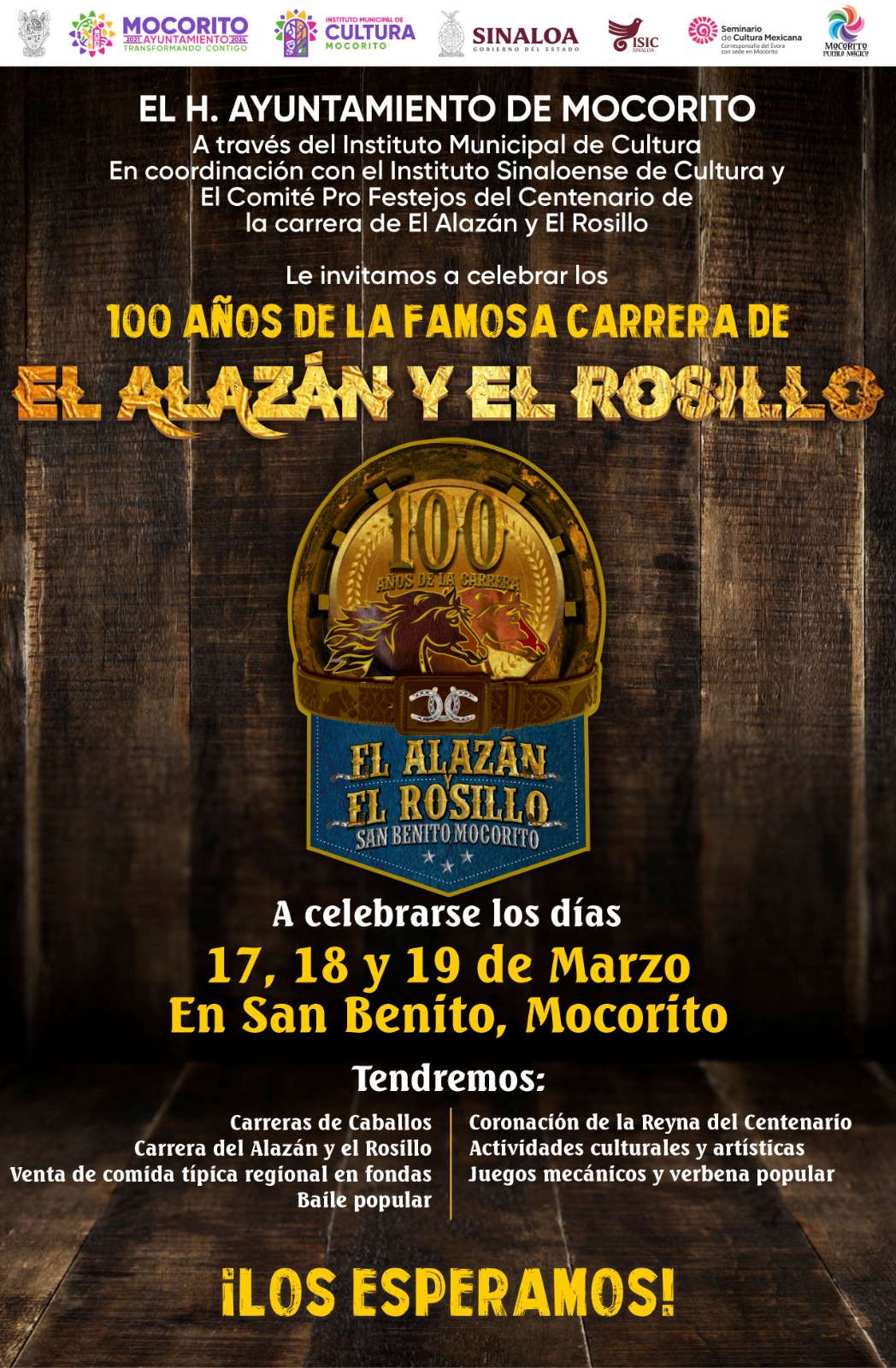 Al presentar esta fase, dio a conocer que ya iniciaron en San Benito, Mocorito, en donde, dijo, el domingo 19 de marzo estarán celebrando el centésimo aniversario de la famosa carrera de caballos de El Alazán y el Rosillo, y aprovechó para hacer una invitación en general para que asistan a este gran evento.