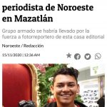 Por su parte, el Colectivo de Periodistas de Mazatlán emitió ya un posicionamiento en el que exigen la actuación inmediata de la autoridad y piden que se respete la integridad Carlos Zatarain.