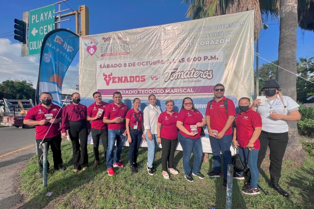 Mazatlán, SIN.- Personal del Sistema DIF Mazatlán, encabezados por la Directora General, Brenda Borboa Sarabia, salieron esta mañana a promover la venta de boletos para el encuentro de béisbol con causa entre Venados de Mazatlán y Tomateros de Culiacán.