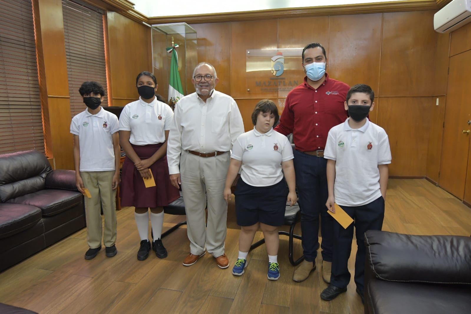 Mazatlán.- El Alcalde Luis Guillermo Benítez Torres realizó la entrega simbólica de becas del Programa de Apoyo al Seguimiento Estudiantil, apoyo que beneficia a mil 500 alumnos de secundaria de la zona urbana y rural del municipio, a través del Instituto Municipal de la Juventud.