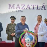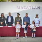 En el marco del Lunes Cívico las autoridades militares, navales, educativas, de salud, regidores, alumnos, maestros y funcionarios de las diferentes dependencias realizaron honores a la bandera, entonaron el himno nacional, el Alcalde Edgar González entregó material deportivo a la Directora y estudiantes destacados recibieron un diploma y un pase familiar para visitar el Acuario Mazatlán.