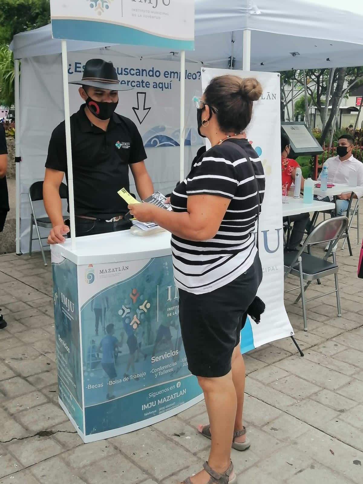 Mazatlán.- El Gibierno de Mazatlán a través del Instituto Municipal de la Juventud, la Secretaria de Desarollo Económico y Turismo, en coordinación con la empresa Soluciones Integrales de Personal, llevan a cabo las Brigadas de Empleo 2021, en 6 puntos estratégicas de la ciudad.