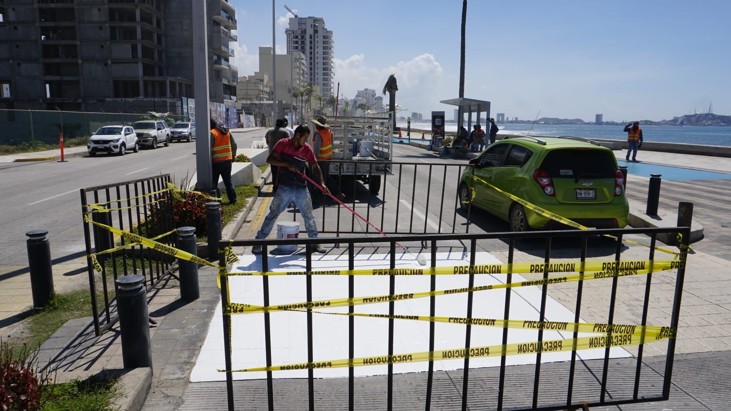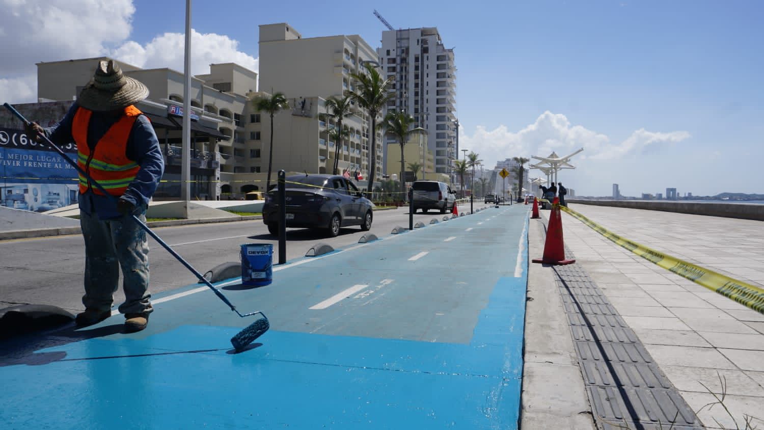 “Estos trabajos se vienen haciendo, originalmente para los pasos de cebra se hicieron unas pruebas para la durabilidad de la pintura, que fueron más o menos 4 cruces en los que pintamos un cuadro entre el Valentino’s más o menos, hasta el hotel Varali, un poco más adelante, viniendo de norte a sur, y hasta ahorita están intactos, funcionó la pintura; anteriormente había habido unas críticas referentes a la pintura que se desprendió, en esa ocasión se estaba haciendo con pintura esmalte que teníamos nosotros de reserva en almacén”, explicó.