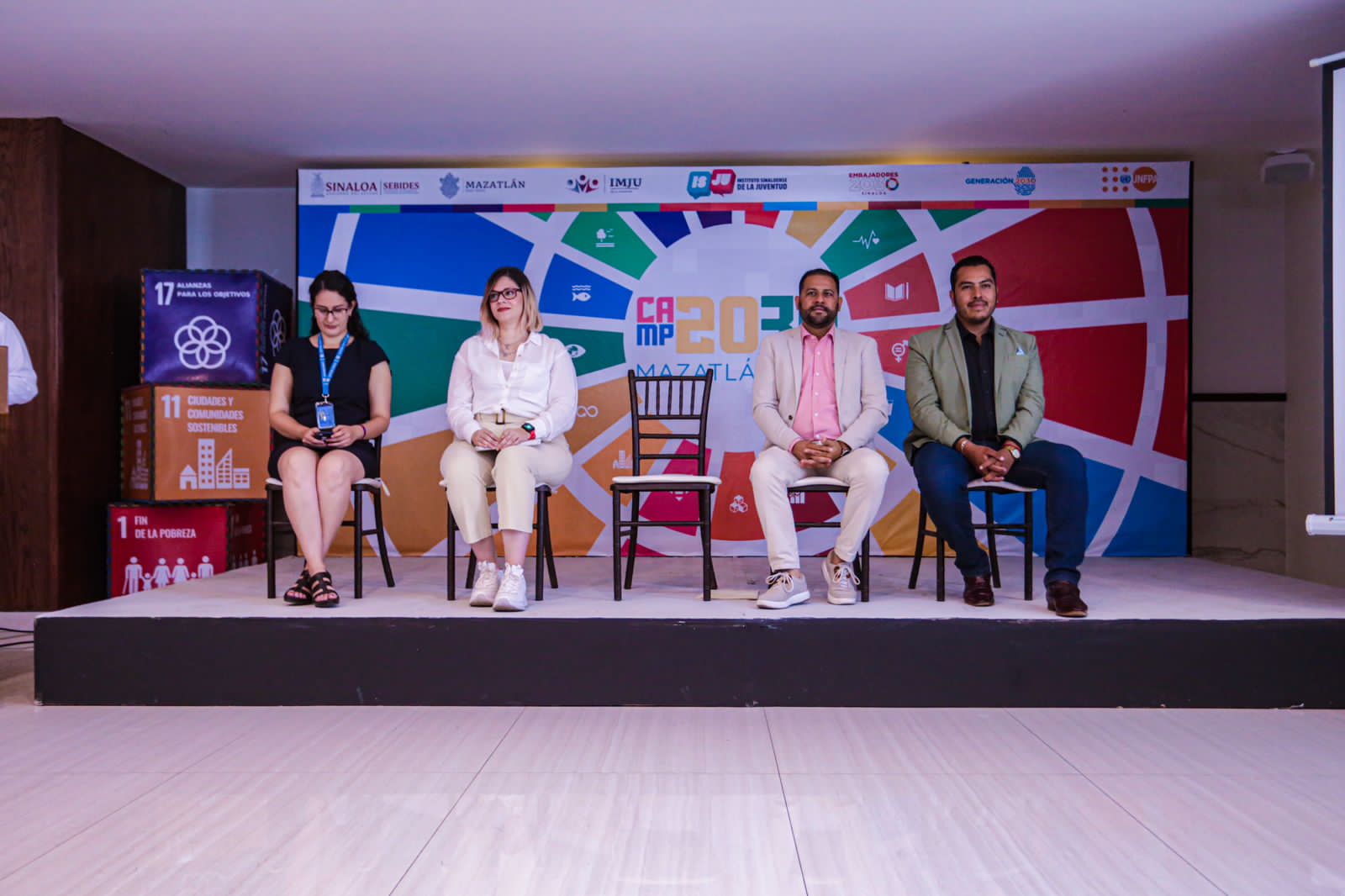 El primer Campamento de Embajadores y Voluntarios de la agenda 2030 estuvo presidido por Director del Instituto Sinaloense de la Juventud, Saúl Gerardo Meza López, representantes de la Secretaria de Turismo, de la Organización de las Naciones Unidas, titulares de los institutos de la juventud de otros municipios de Sinaloa y de cinco estados de México.