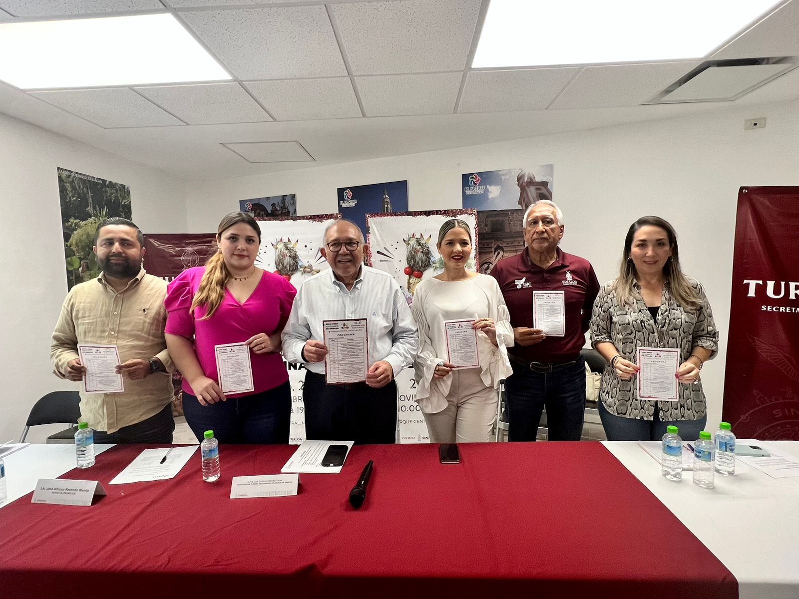 En la conferencia también estuvieron: José Alfonso Reséndiz Memije, director de Promotur; Teresa Letamendi Patrón, Coordinadora de Turismo en representación del titular de la Secretaría de Desarrollo Económico, Turismo y Pesca de Mazatlán, Ricardo Velarde; y en representación del Secretario de Economía de Sinaloa, Javier Gaxiola Coppel, la jefa de Fomento Artesanal, Arlín Meléndez Ortíz.