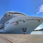 Mazatlán, Sin., nov., 10 de 2021.- Por segundo día consecutivo entró a este puerto un crucero turístico, en este caso correspondió al M/V Carnival Panorama, procedente de Puerto Vallarta.