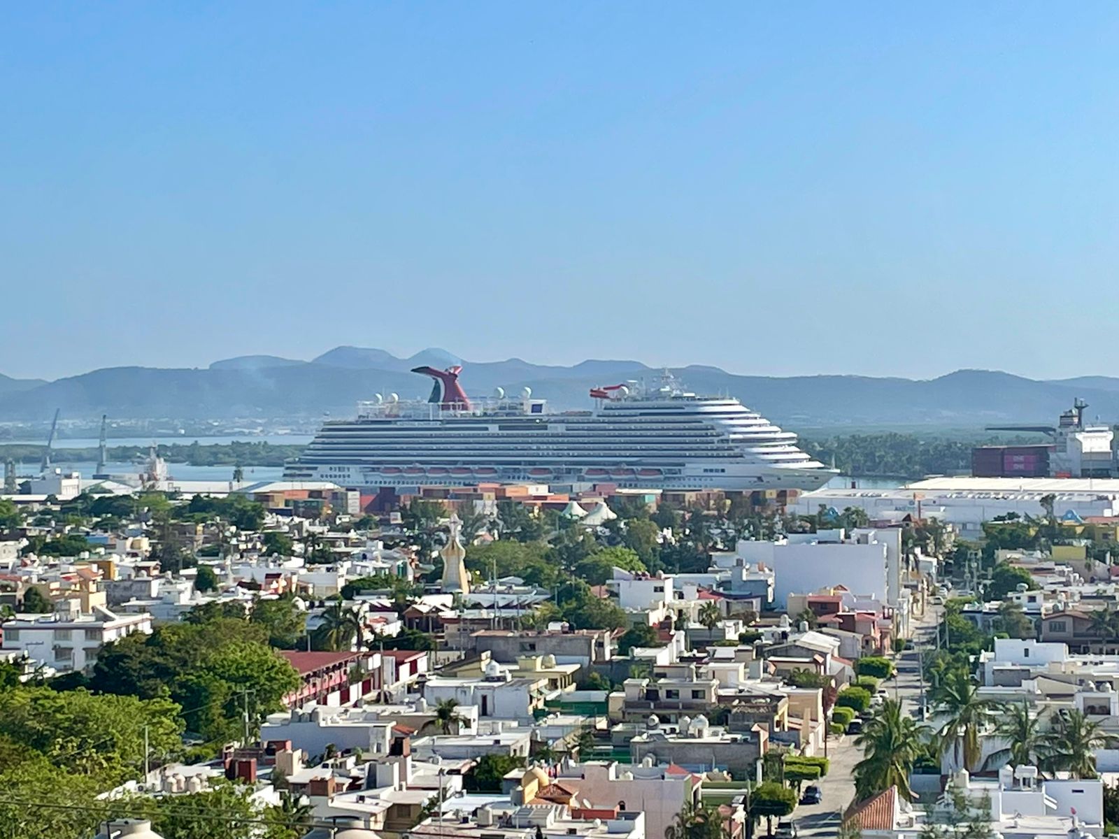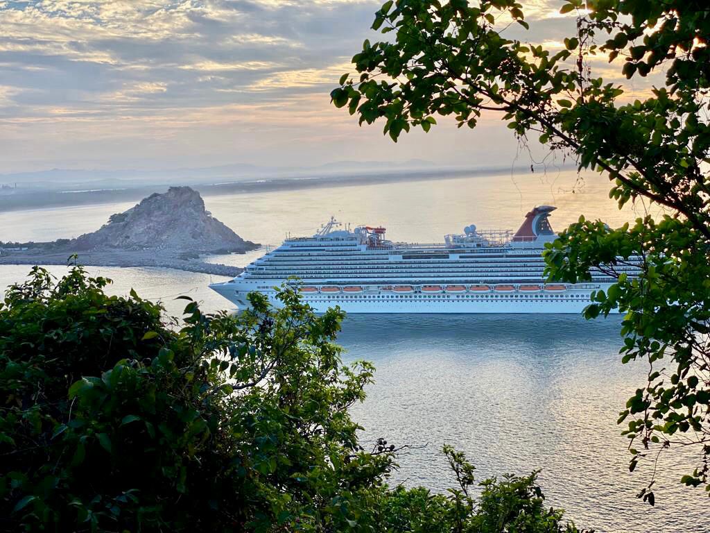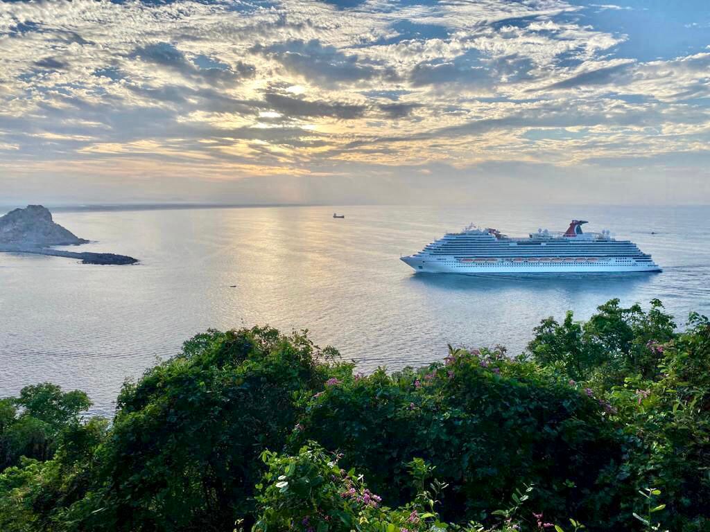 Mazatlán, Sin., nov., 10 de 2021.- Por segundo día consecutivo entró a este puerto un crucero turístico, en este caso correspondió al M/V Carnival Panorama, procedente de Puerto Vallarta.