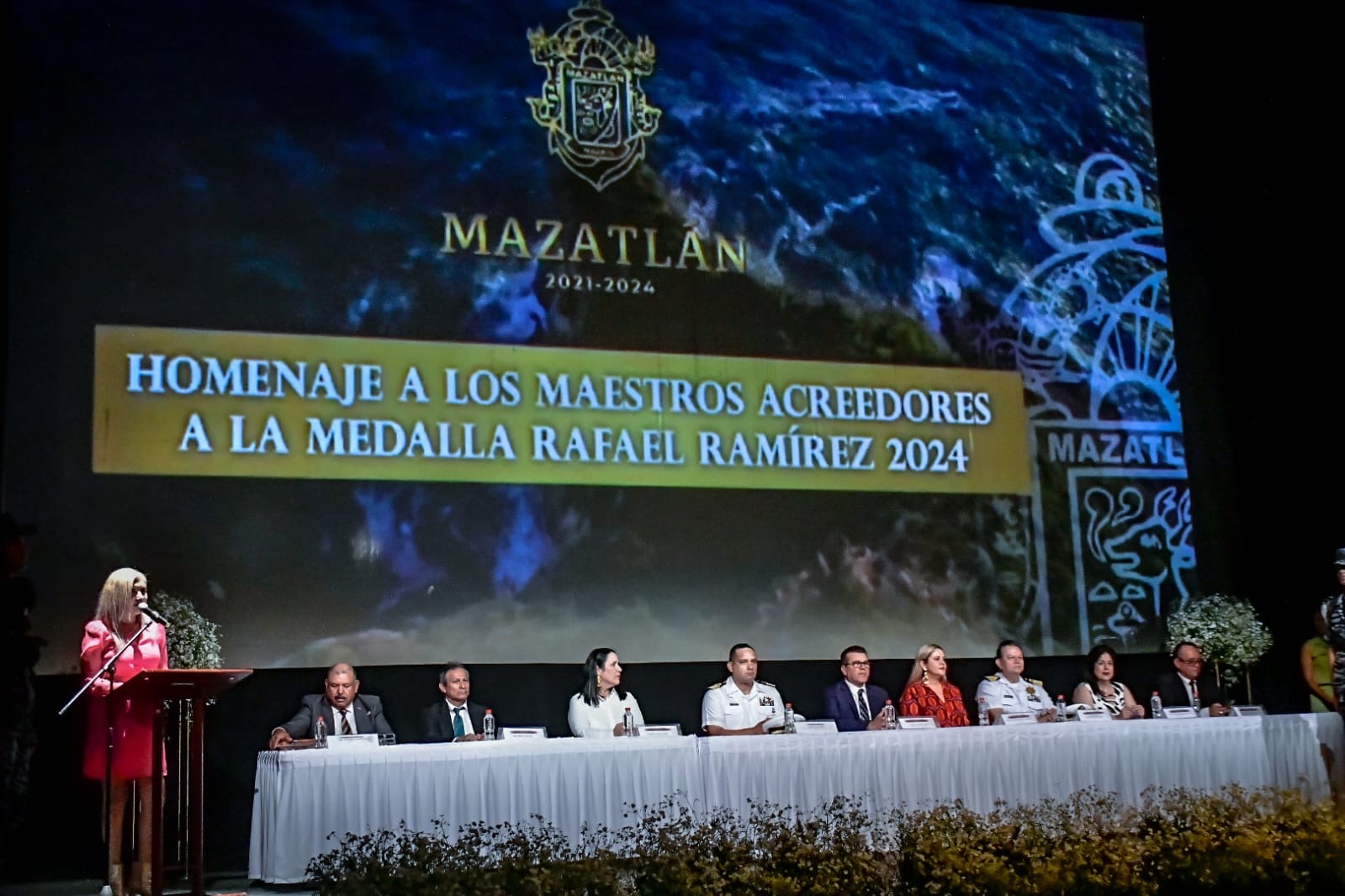 Mazatlán, Sinaloa a 15 de mayo del 2024.-En el marco del Día del Maestro el Gobierno de Mazatlán y Gobierno del Estado, a través de la Secretaría de Educación Pública, hizo entrega de la Medalla al Mérito “Rafael Ramírez 2024”, a 66 docentes por 28 y 30 años de servicio a la educación de la niñez mazatleca.