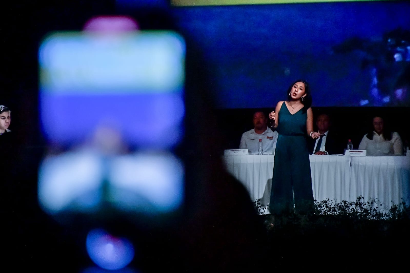 En la entrega del distintivo a los maestros estuvieron presentes en el presídium la Presidenta del Sistema DIF Municipal, María Teresa Apodaca de González, la Regidora y Coordinadora de la Comisión Educación del Cabildo; Francis Osuna Velarde.