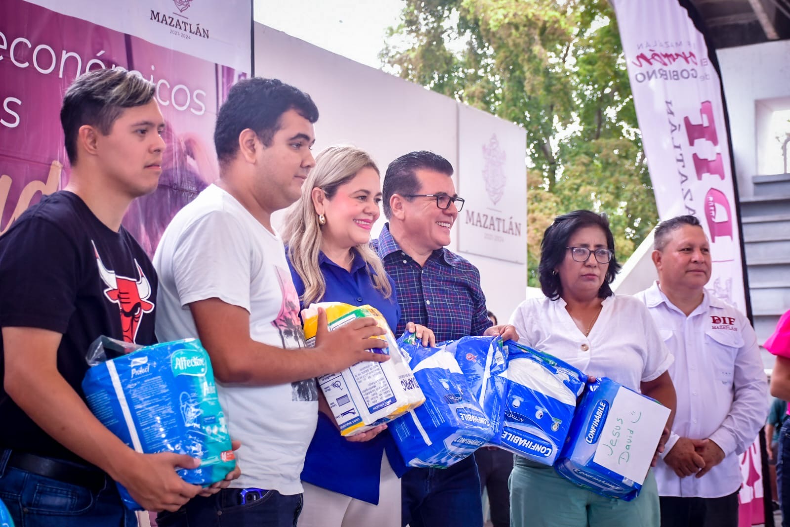 La entrega de apoyos fue encabezada por el Alcalde Edgar González y la presidenta de Sistema DIF Mazatlán, María Teresa Apodaca e González.