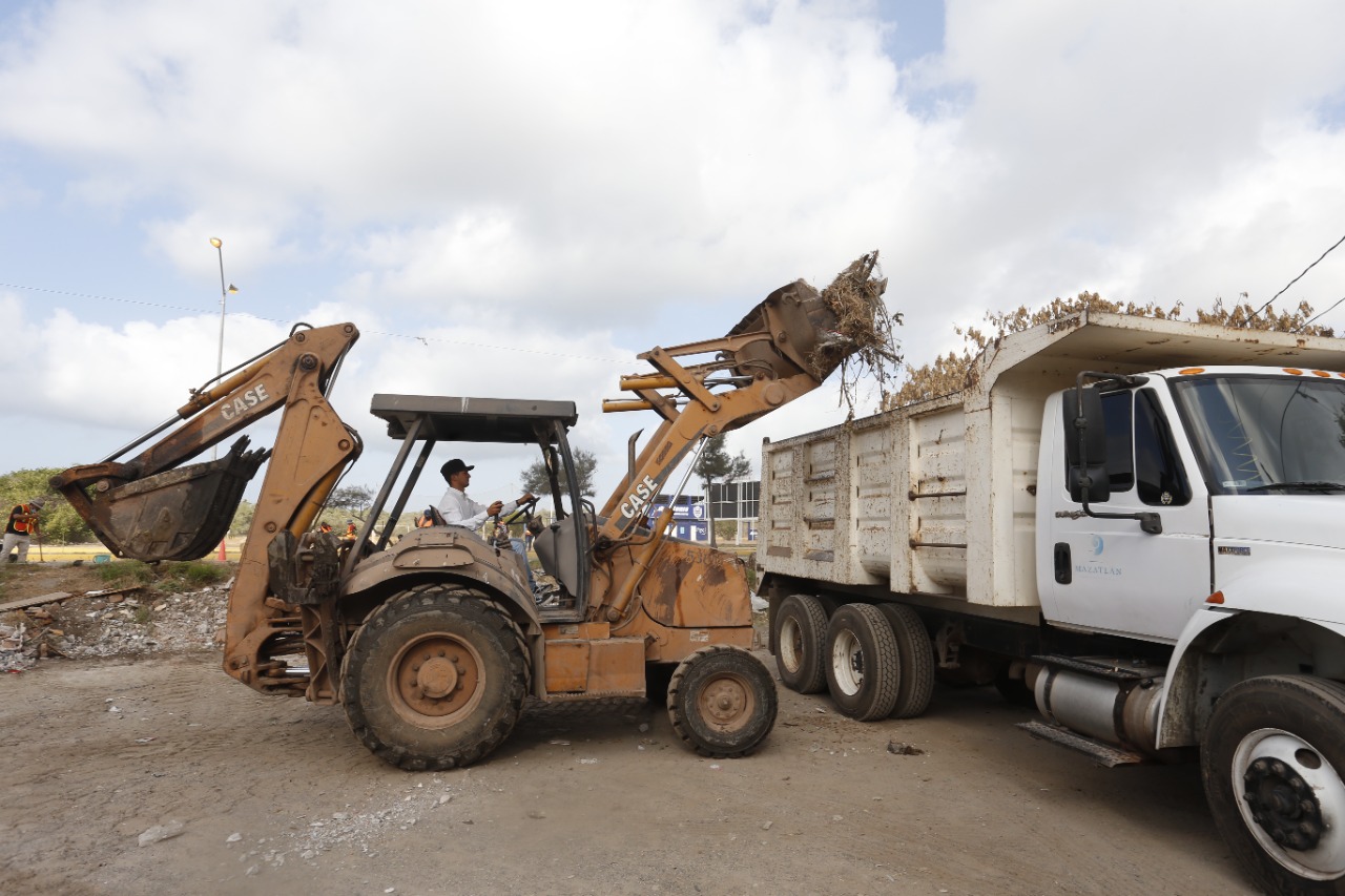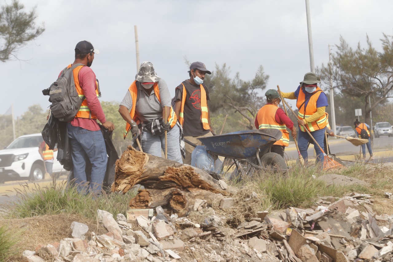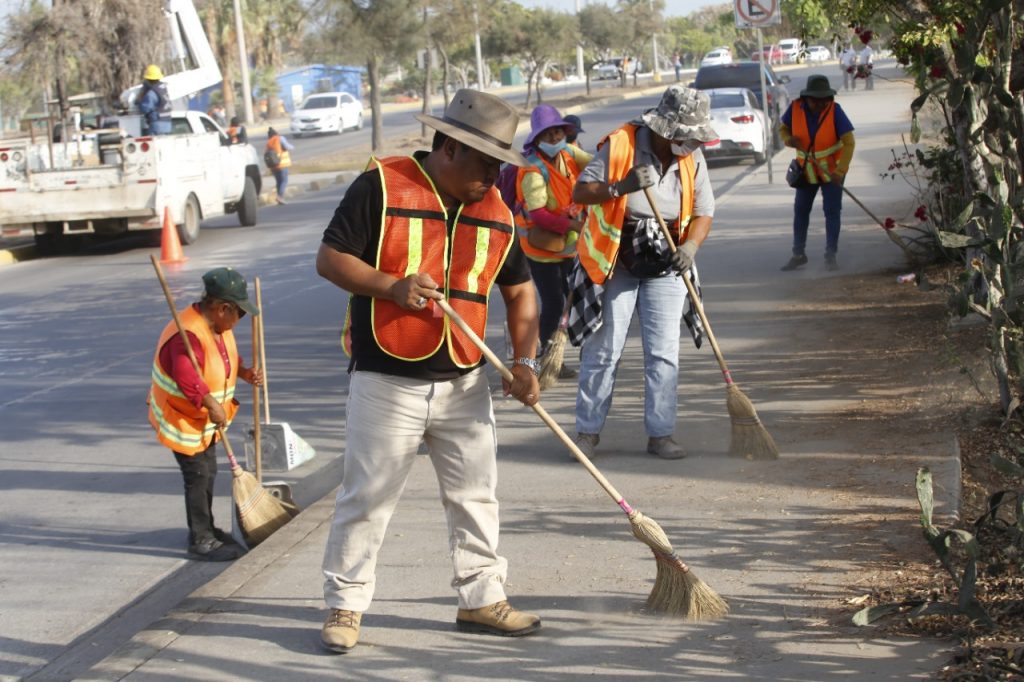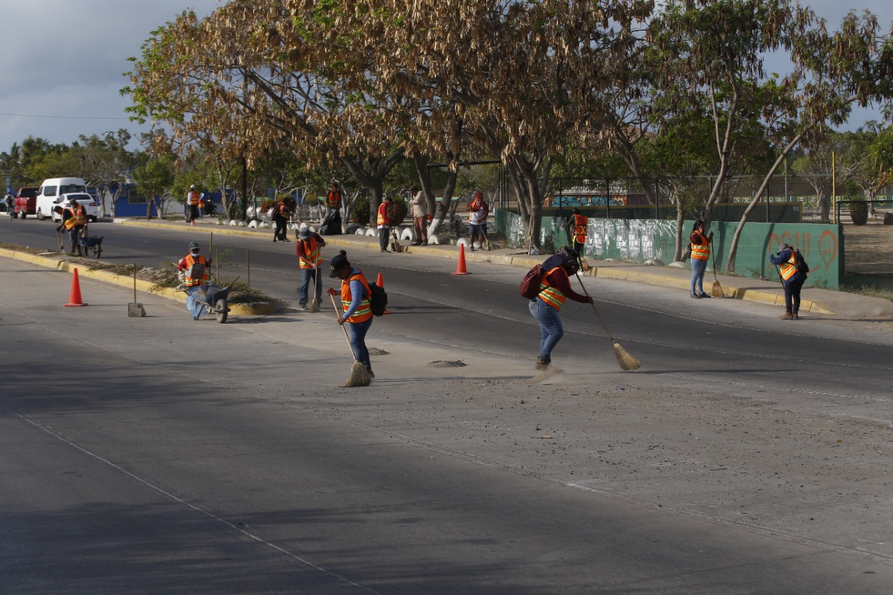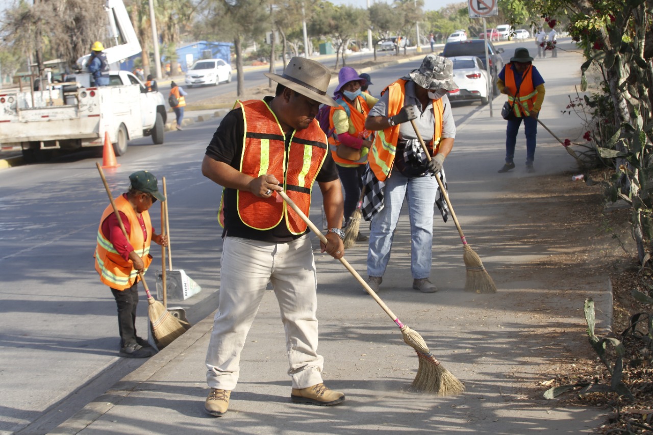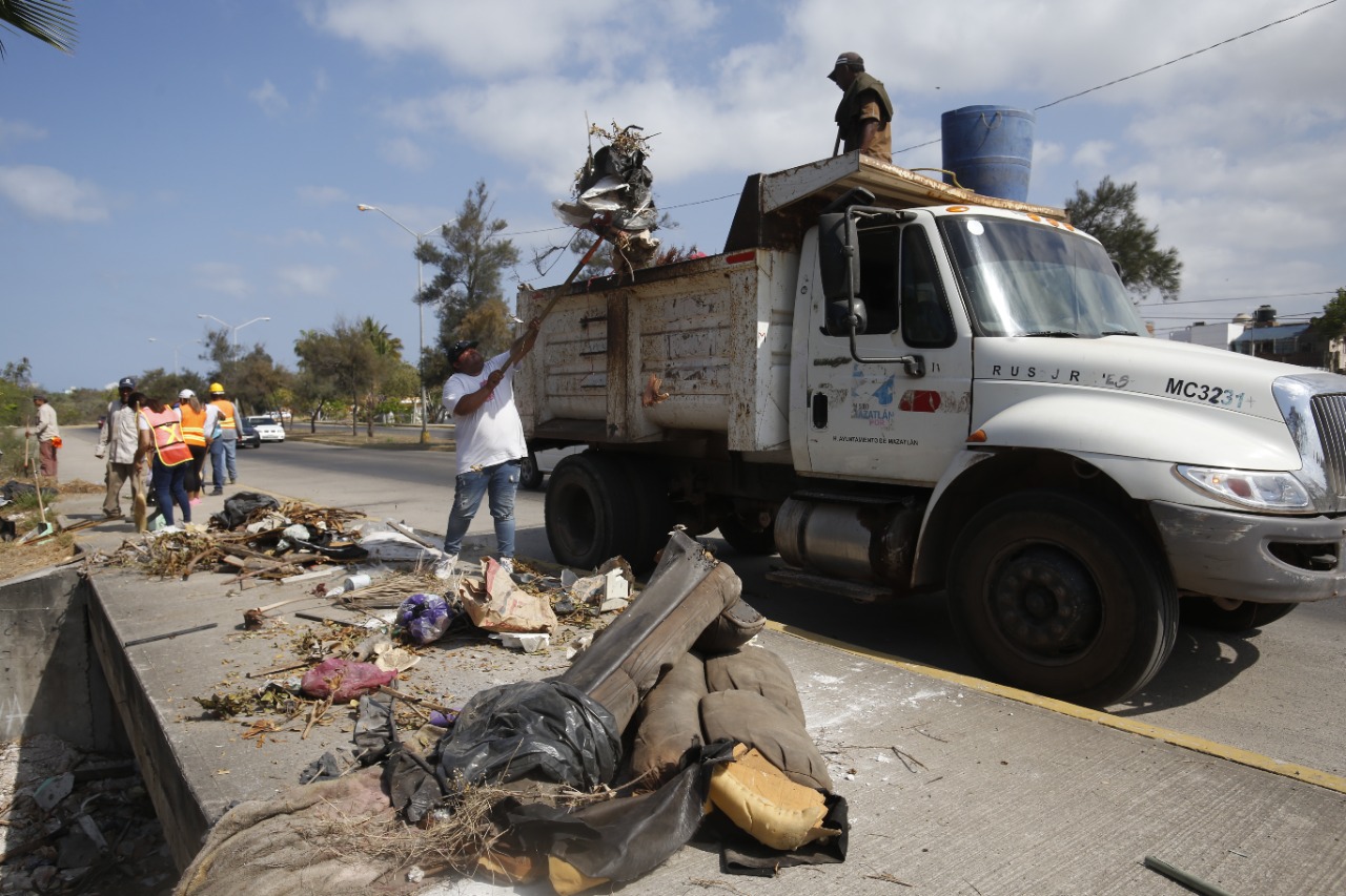Mazatlán, SIN. – Como parte de la campaña que lleva a cabo el Gobierno de Mazatlán, “En temporada de lluvias, que el agua fluya”, la Dirección de Servicios Públicos realizó esta mañana una jornada de limpieza en la zona de la avenida Juan Pablo II, empezando a la altura de Insurgentes hasta llegar a los campos deportivos de la Liga Quintero Castañeda.