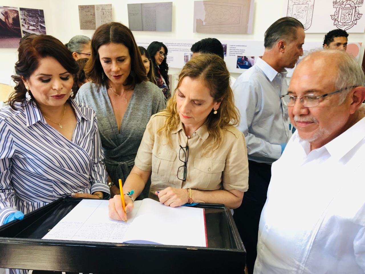 Gutiérrez Müller, acompañada del Químico Benítez y la señora Gabriela Peña Chico, presidenta del DIF Mazatlán, observó los resultados de la estabilización de documentos de gran importancia histórica, la digitalización en formato amplio del acervo, la clasificación de documentos y escuchó el proyecto que la autoridad municipal tiene para la sala de consulta digital y el área de préstamo.