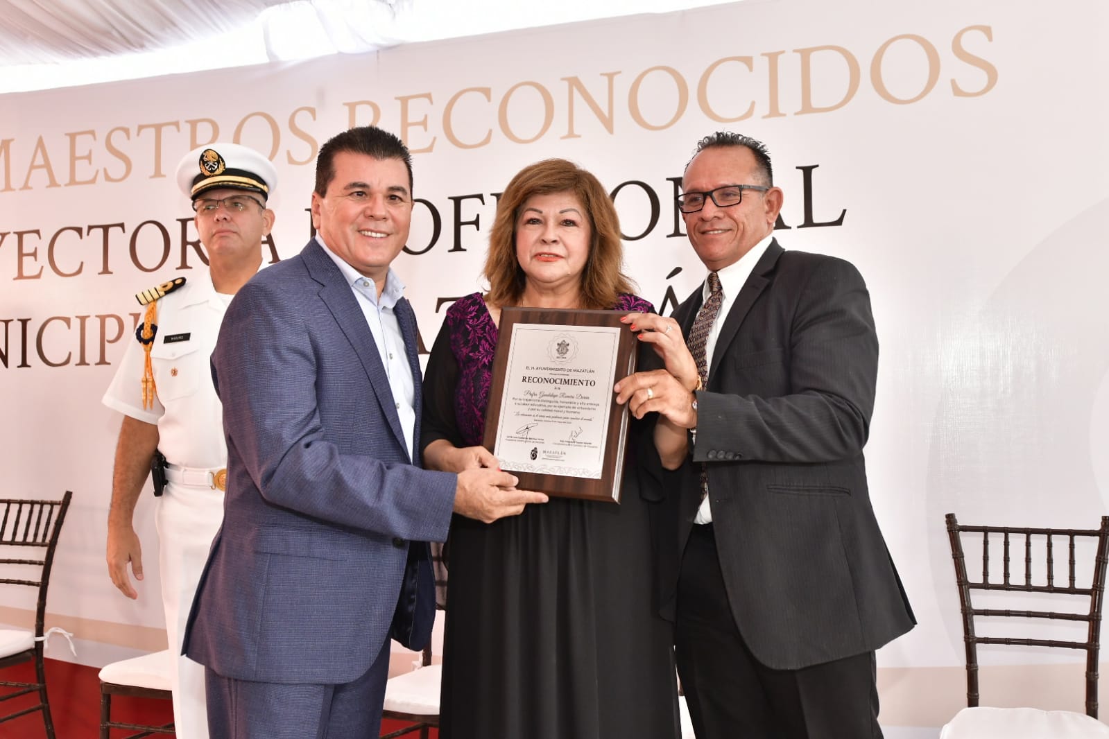 En las actividades realizadas asistieron autoridades educativas, municipales, militares, navales, familiares de los maestros homenajeados e invitados especiales.