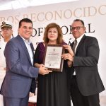 En el marco del Día del Maestro y para destacar la gran labor y trayectoria de 28 y 30 años en el servicio educativo, 66 maestros recibieron la medalla “Rafael Ramírez Castañeda» en una ceremonia realizada en el Teatro Ángel Peralta.