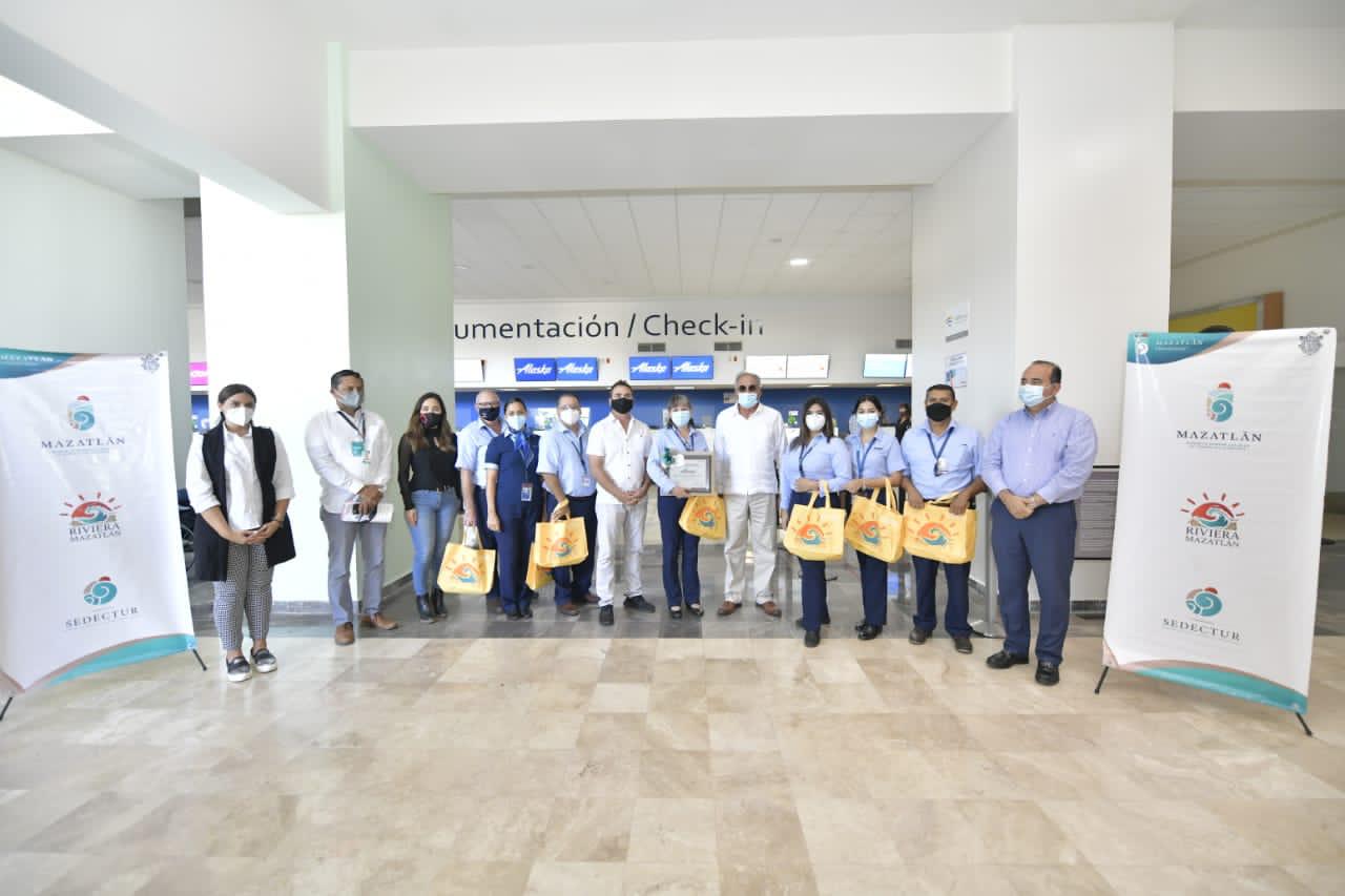 Mazatlán.- La aerolínea Alaska Airlines cumple este domingo 15 de noviembre 32 años de volar hacia este destino turístico, y el Gobierno Municipal hizo entrega de un reconocimiento a personal de la estación de la compañía en el Aeropuerto Internacional «Rafael Buelna Tenorio».
