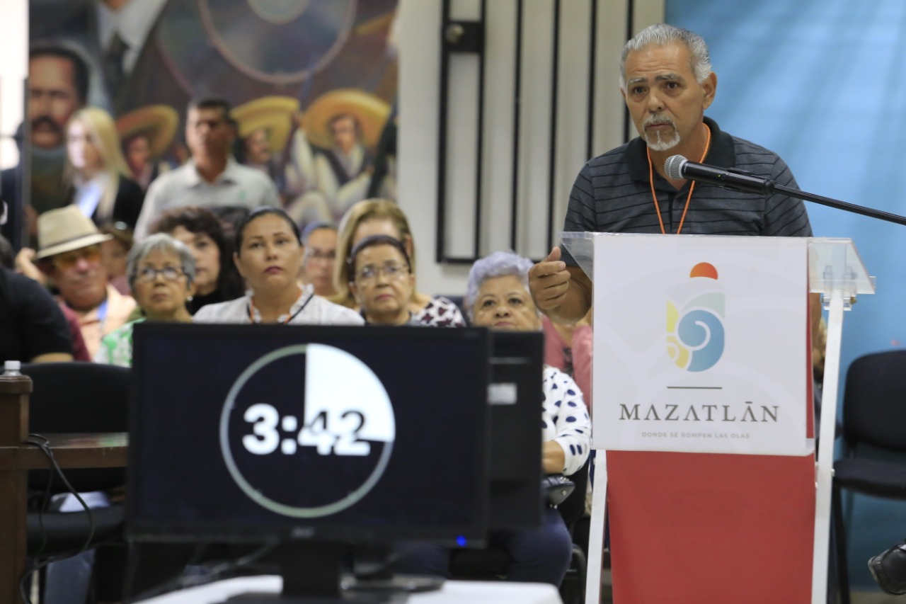 Durante el Cabildo Abierto número 7, llevado a cabo la tarde de este viernes, la edil felicitó al Alcalde Luis Guillermo Benitez Torres, directores y trabajadores del Ayuntamiento de Mazatlán, donde se rompen las olas, la ciudad del Carnaval.