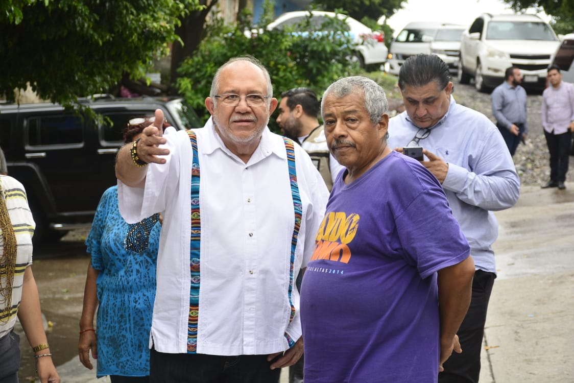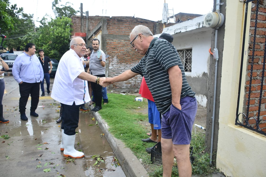 Mazatlán.- Luego de las lluvias y fuertes vientos que a su paso dejó “Narda” en el puerto, el Químico Benítez recorrió algunas colonias encabezando una de las brigadas que el municipio dispuso para atender las necesidades de la población.