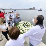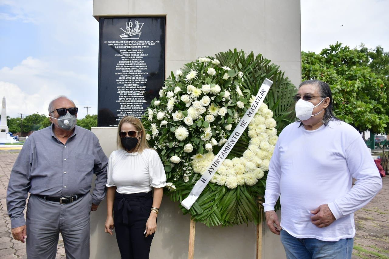 Mazatlán.- Con dos ofrendas florales, una colocada a los pies de la Virgen de Guadalupe ubicada en La Puntilla y otra arrojada al mar, autoridades municipales recordaron a los 32 pescadores mazatlecos que perdieron la vida durante el Huracán Ismael en septiembre de 1995.