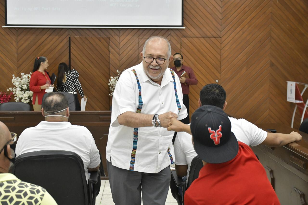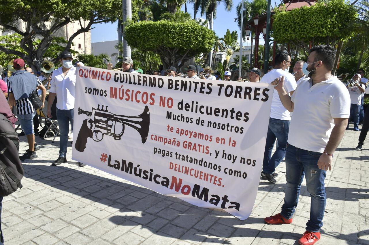Mazatlán.- El Alcalde Luis Guillermo Benitez Torres refrendó su apoyo total a los músicos de playa, con los que se reunió la mañana de hoy, luego de que éstos hicieron una marcha pacífica para denunciar supuestos abusos por parte de elementos de la Policía Municipal.